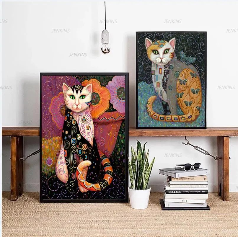 Картина маслом Густав Климт, животное, кот, постер, украшение для дома, картина для гостиной на холсте, без рамки