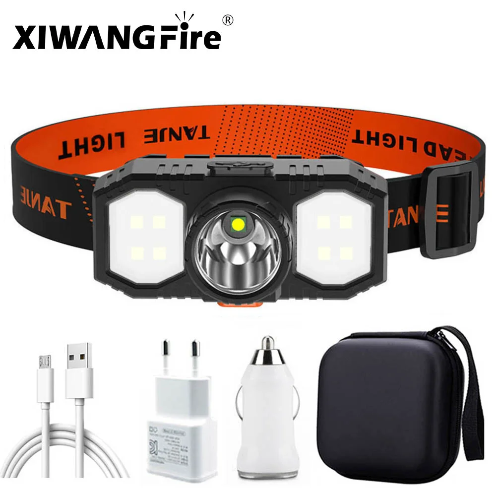 Налобный фонарь Q5 + COB, светодиодный со встроенным аккумулятором 18650, перезаряжаемый с Micro USB