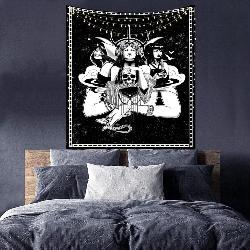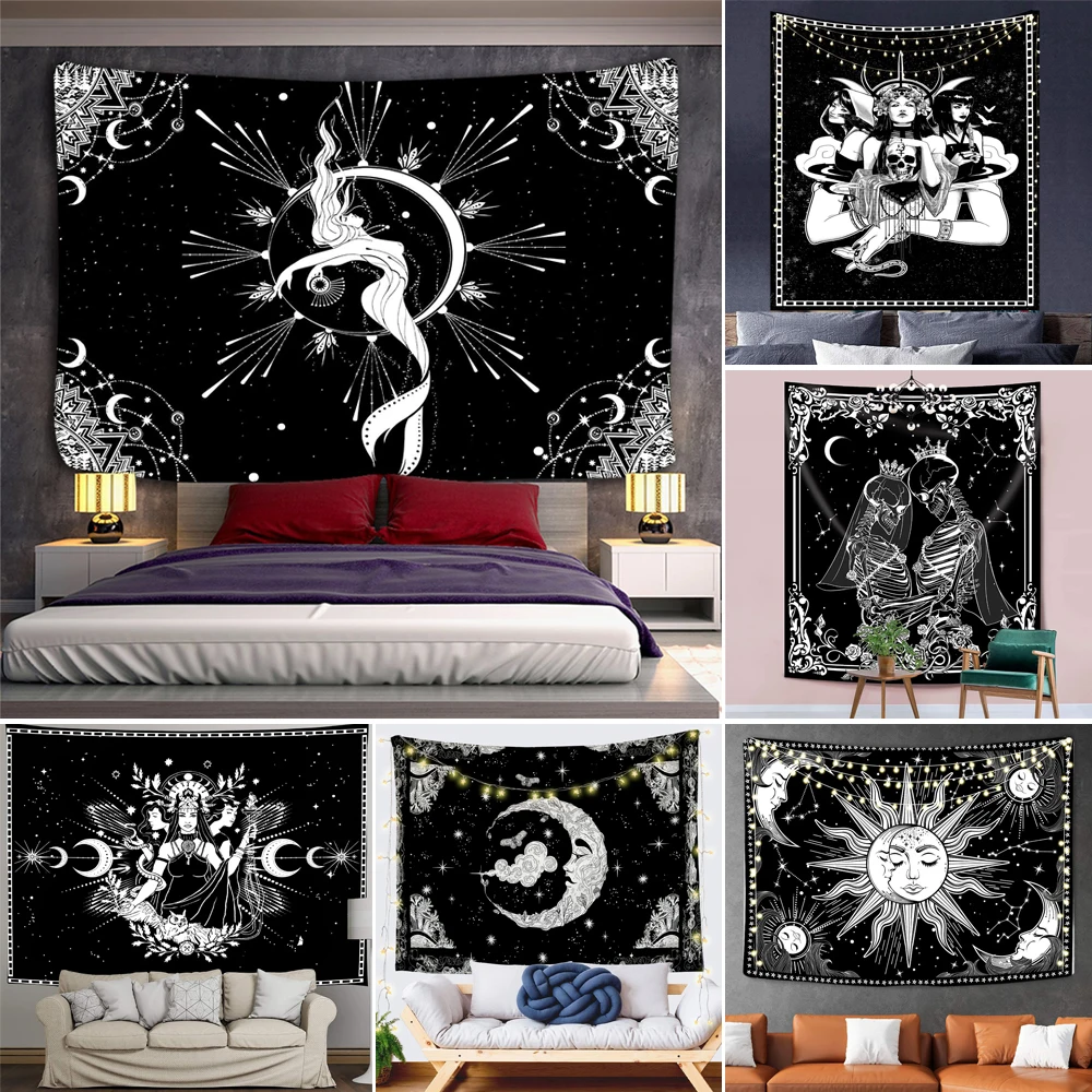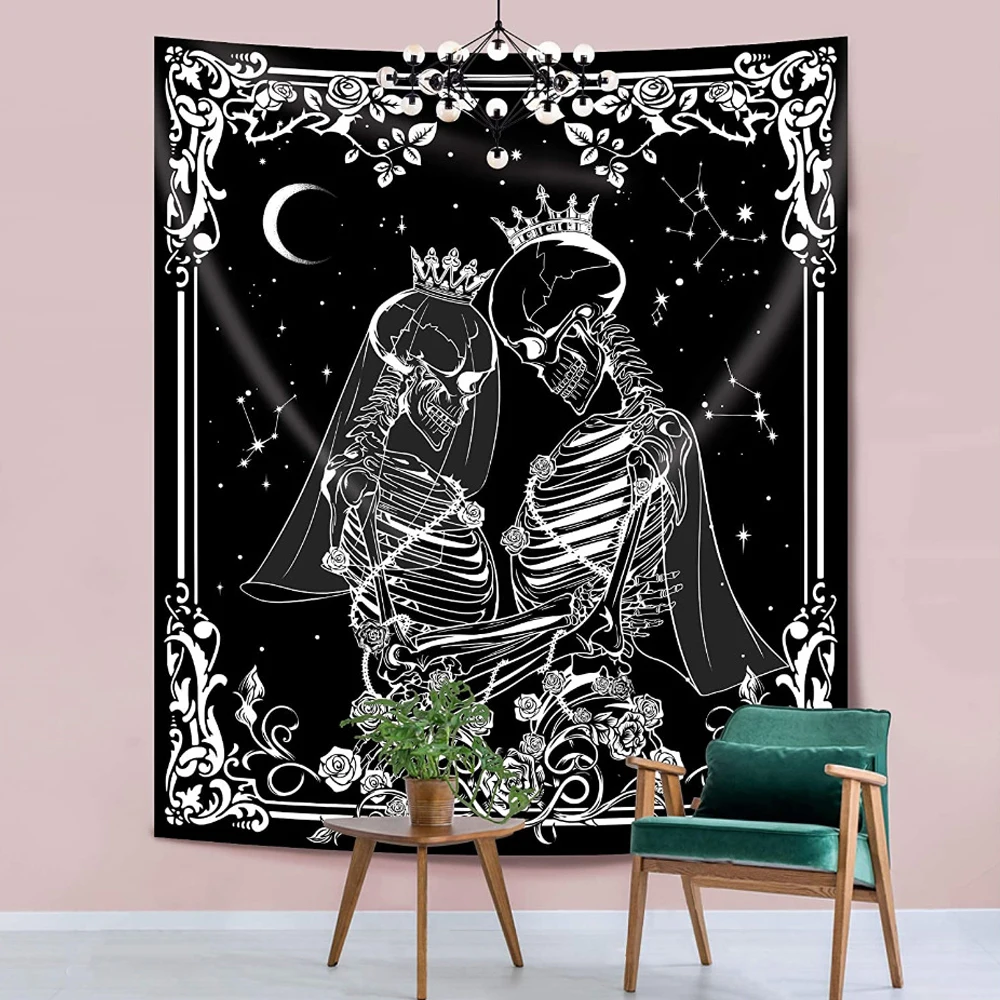 Гобелен Луна и русалки настенный гобелен Скелет любовник хиппи домашний Бохо декор черный и белый спальня декоративный ковер