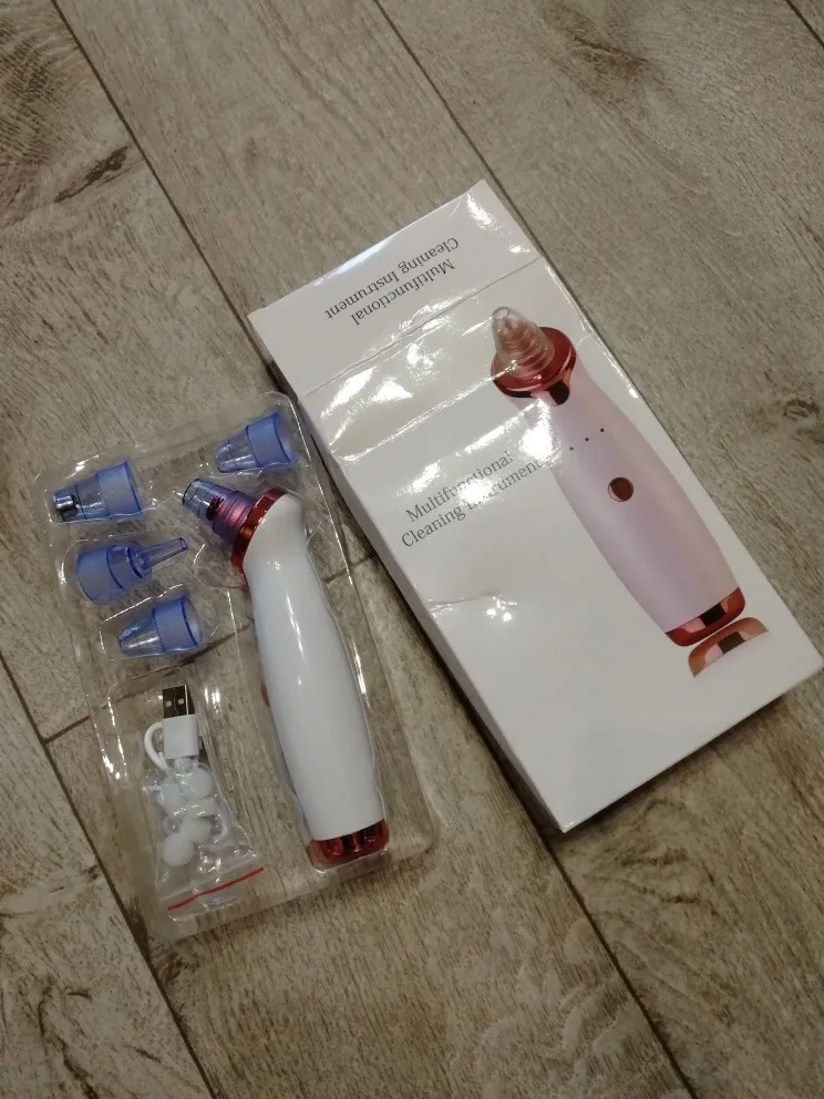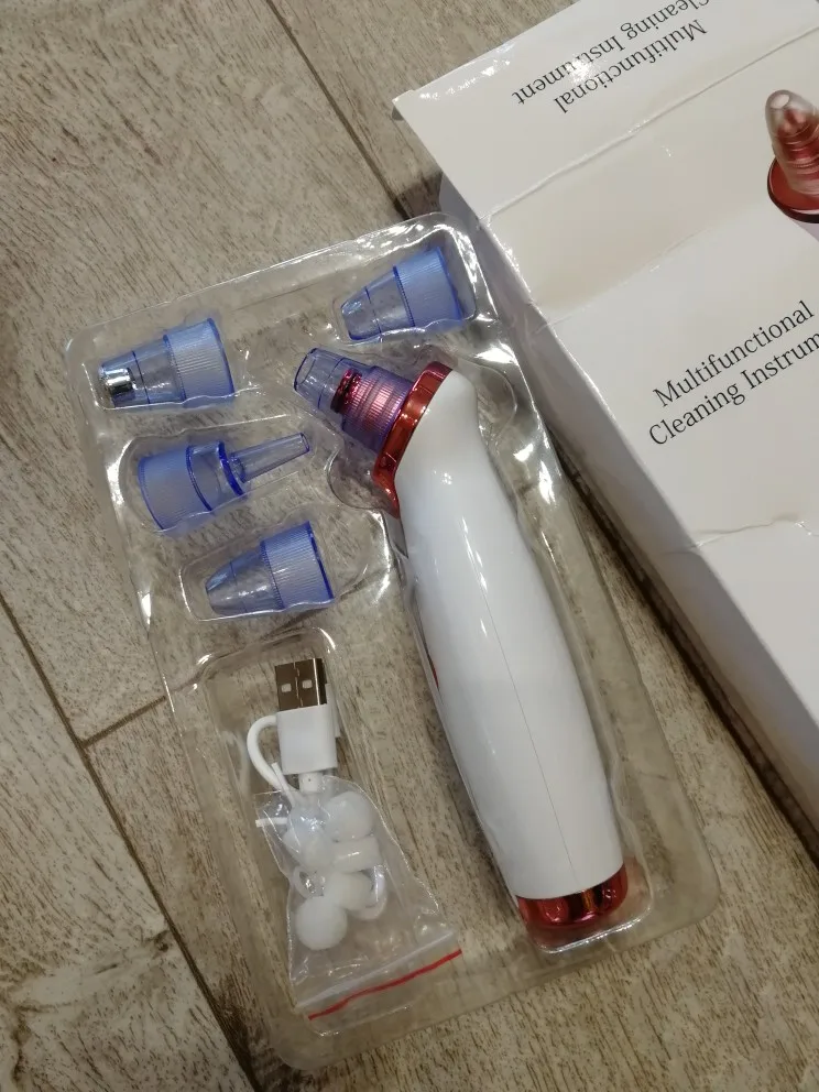 доставка просто реактивная. дошло за 3 дня! это рекорд. выиграла в халяве. Я люблю всякие такие штуки. в принципе бобаловаться прикольно. много насадок, фильтры, зарядка,. есть 3 режима от самого слабого до сильного. втягивает на примере пылисоса. вообще мне кажется что кожу травмирует если насаду не правильно выбрать или и угорь клубоко сидит. может синячек остаться. но если не умеете пользоваться специальной лопаткой для угрей, то эта штучка подойдет. главное распарить лицо и продезефицировать. Я попробовала. не на распареное. что то вытянул но не доканца.