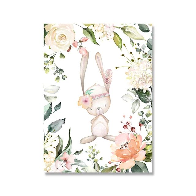 Nordic спрей Цвет плакат для девочек, с принтом кролика; Холст карт...
