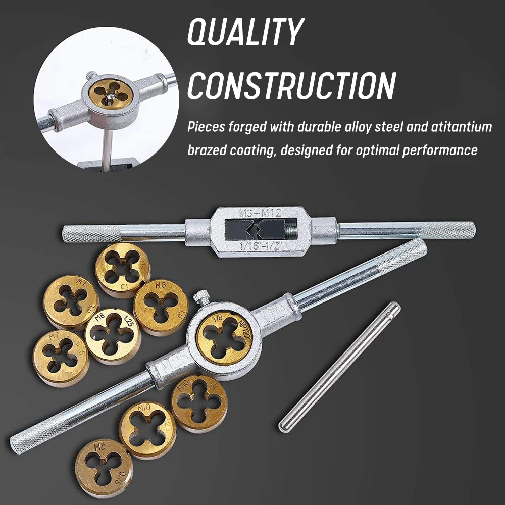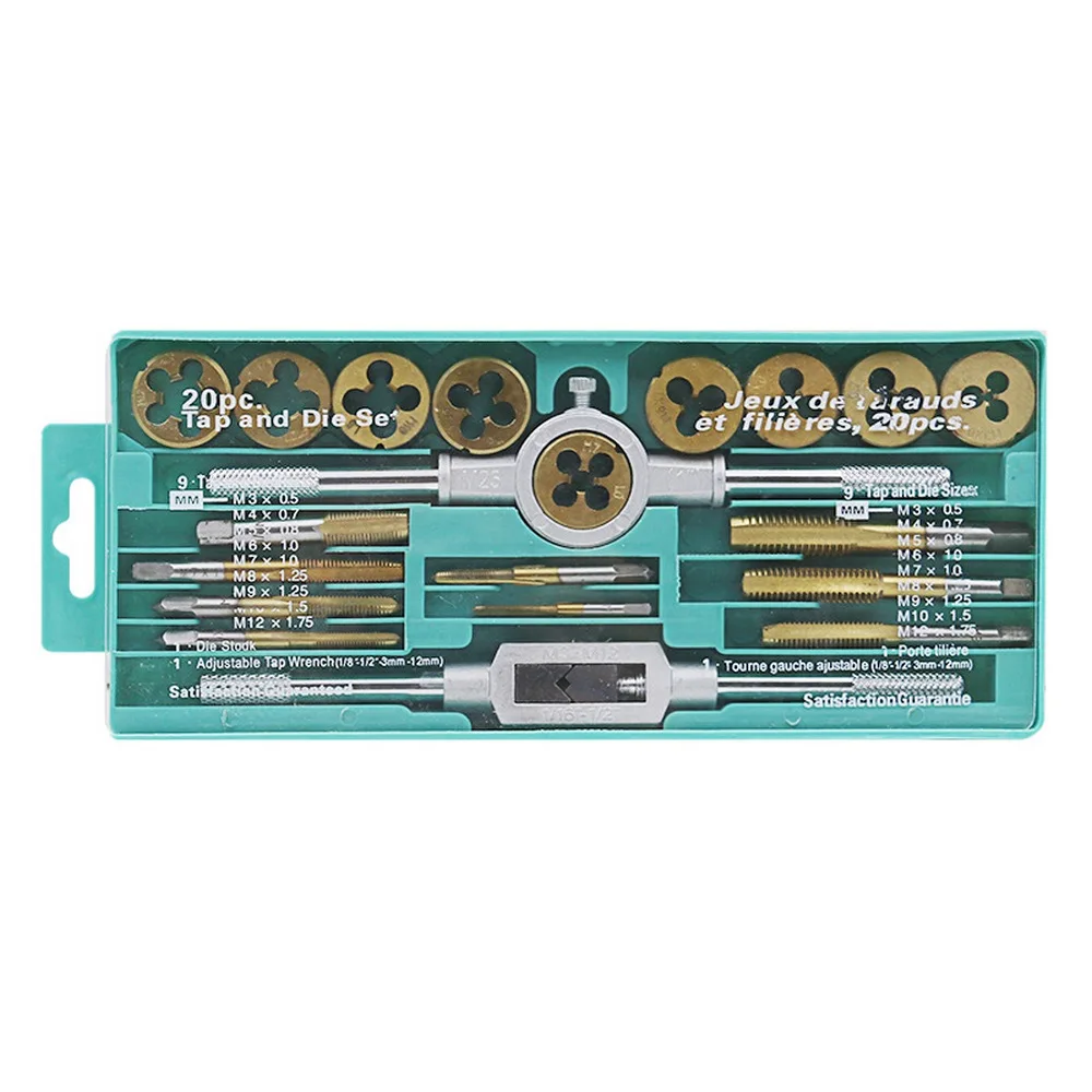 Набор метчиков и плашек, метрические кран гаечный ключ, M3-M12 метчиков и плашек, метрические ручные внешние набор инструментов для нарезания резьбы, ручной инструмент с сумкой, 20 шт.