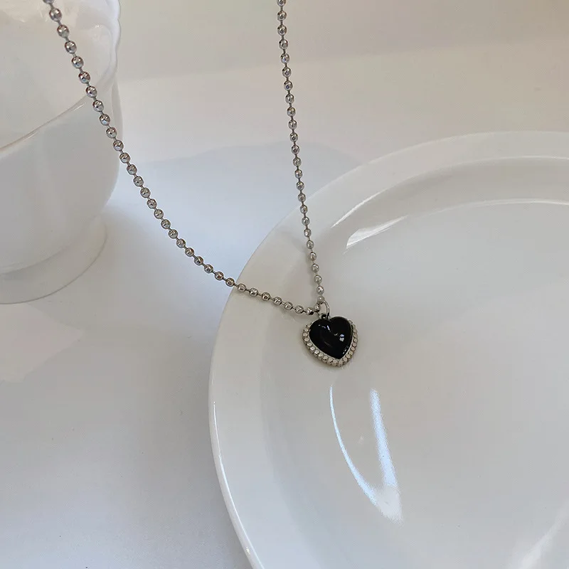 Корейское модное ожерелье с подвеской в виде готического сердца для женщин, Винтажные бусины в стиле хип-хоп, чокер, простая цепочка из титановой стали для ключиц, ювелирные изделия