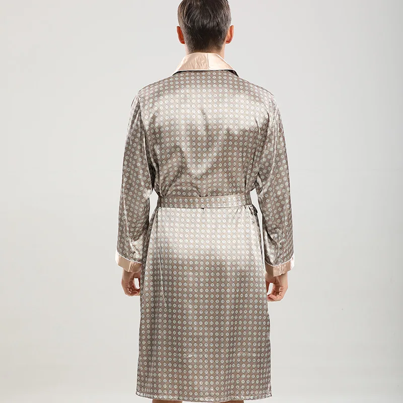 Размера плюс 3XL Для мужчин халат кимоно сезон: весна-лето одежда для сна тонкий мягкий чехол из искусственного шелка и сатина, пижамы, одежда для дома с печатным рисунком и длинным рукавом, домашняя одежда
