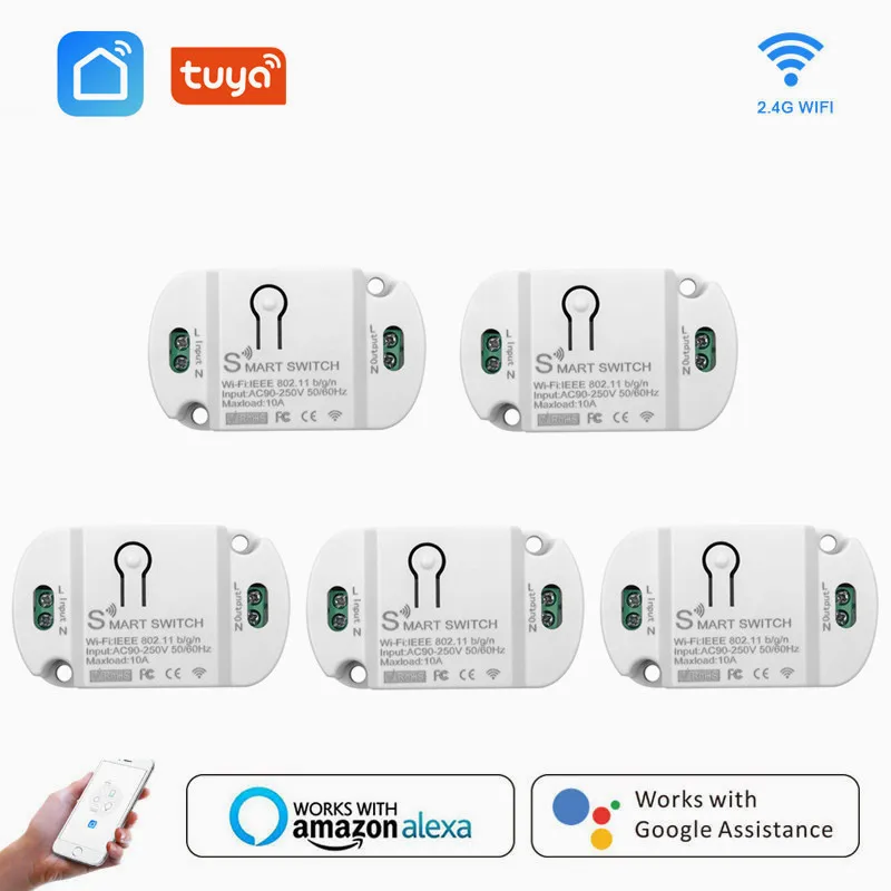 Модуль интеллектуального мини-переключателя Wi-Fi 10A, поддерживает двухстороннее управление, Модуль Автоматизации умного дома, прерыватель для Alexa Google Home