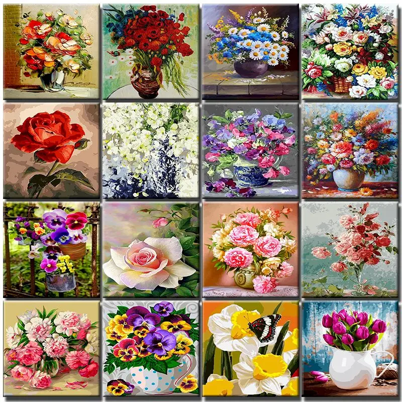 60x75cm Краски по номерам Наборы на холсте Цветы DIY Безрамное масл...
