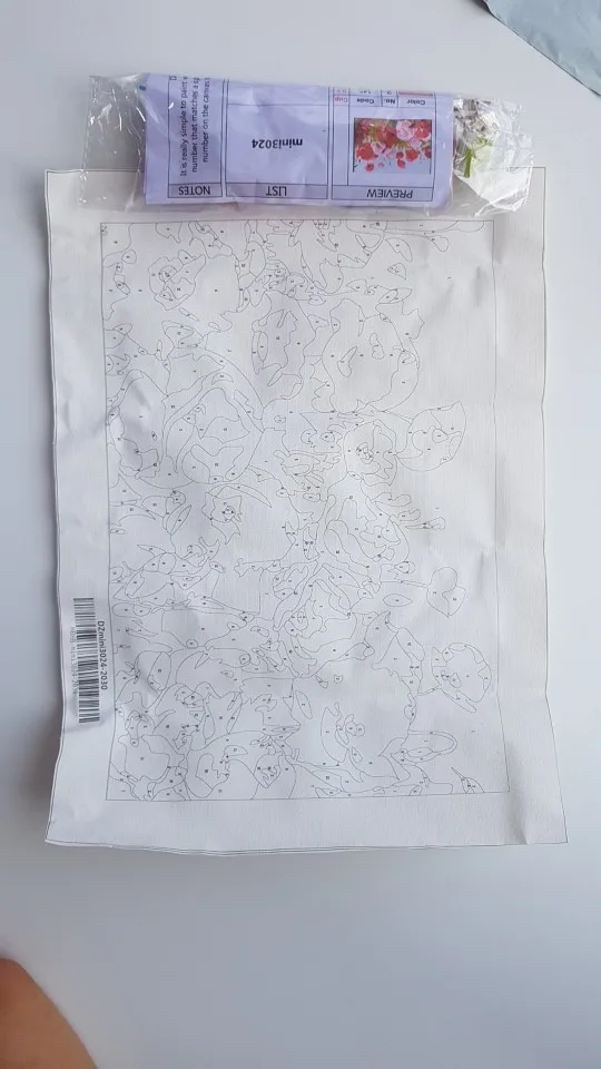 Что внутри: льняное полотно; 3 кисти; 1 Набор акриловой краски; Файл инструкции; Справочный лист; Рамка; Вешалка; Винты.