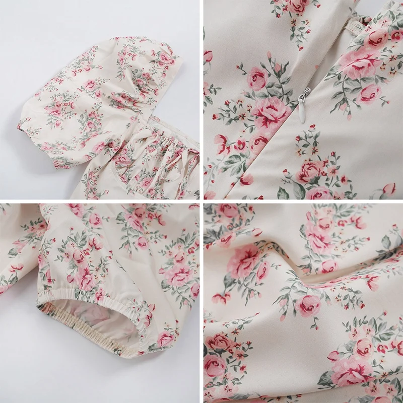 Женское кружевное платье с цветочным принтом, летние платья с пышными рукавами и квадратным вырезом, оборками и разрезом, 2021