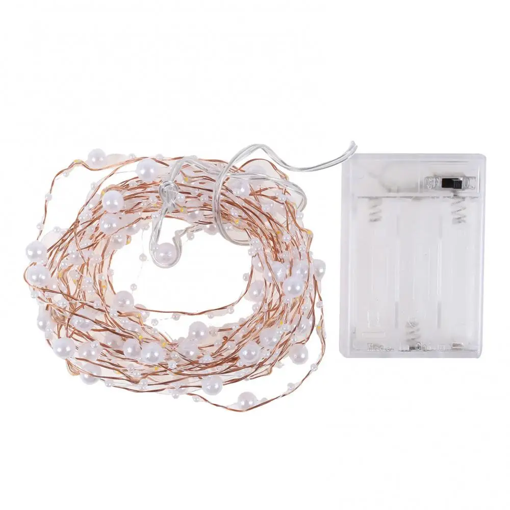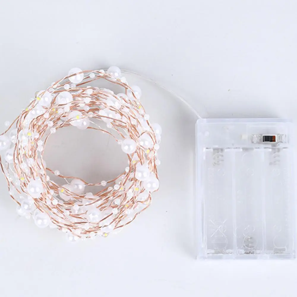 Светодиодная гирлянда из медной проволоки, 50 лампочек с искусственным жемчугом, декор для свадьбы, Рождества, сказосветильник светильник, звездная гирлянда