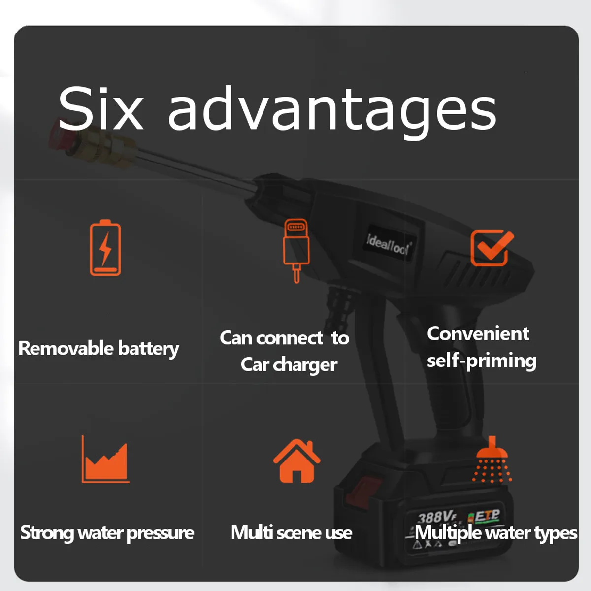 ● Его можно использовать в качестве моющего пистолета для воды, садовых оросительных инструментов.