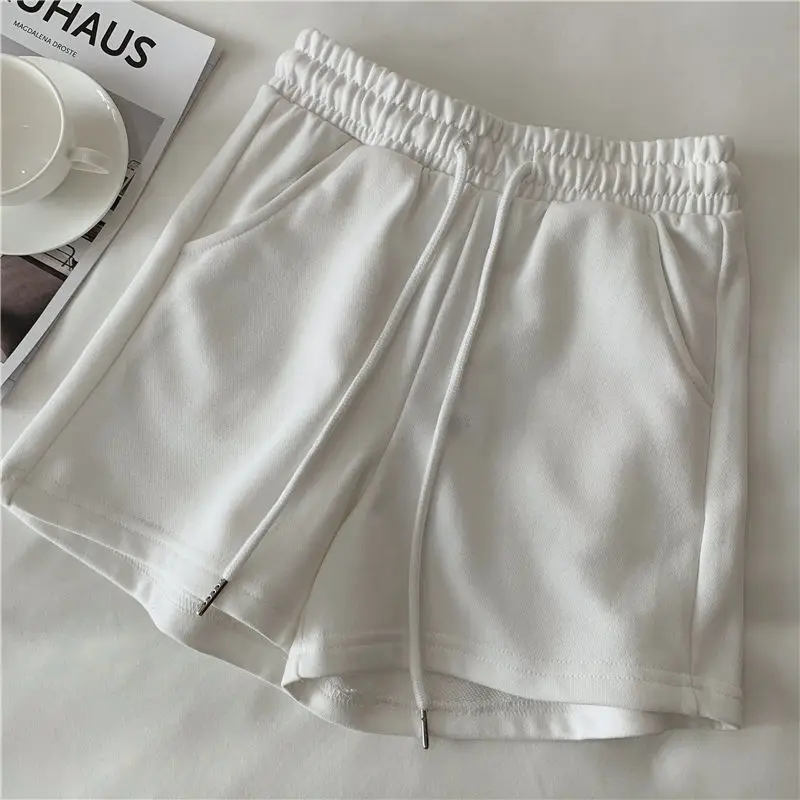 Шорты женские для тренировок, простые однотонные повседневные прямые штаны для девушек в колледже, с эластичным поясом, удобные хипстерские с карманами, 3 цвета