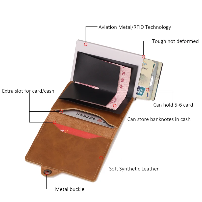 Кошелек мужской из кожи и металла, тонкий, складной, с Rfid-защитой, 2021