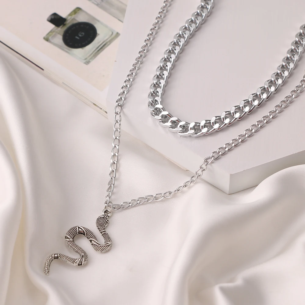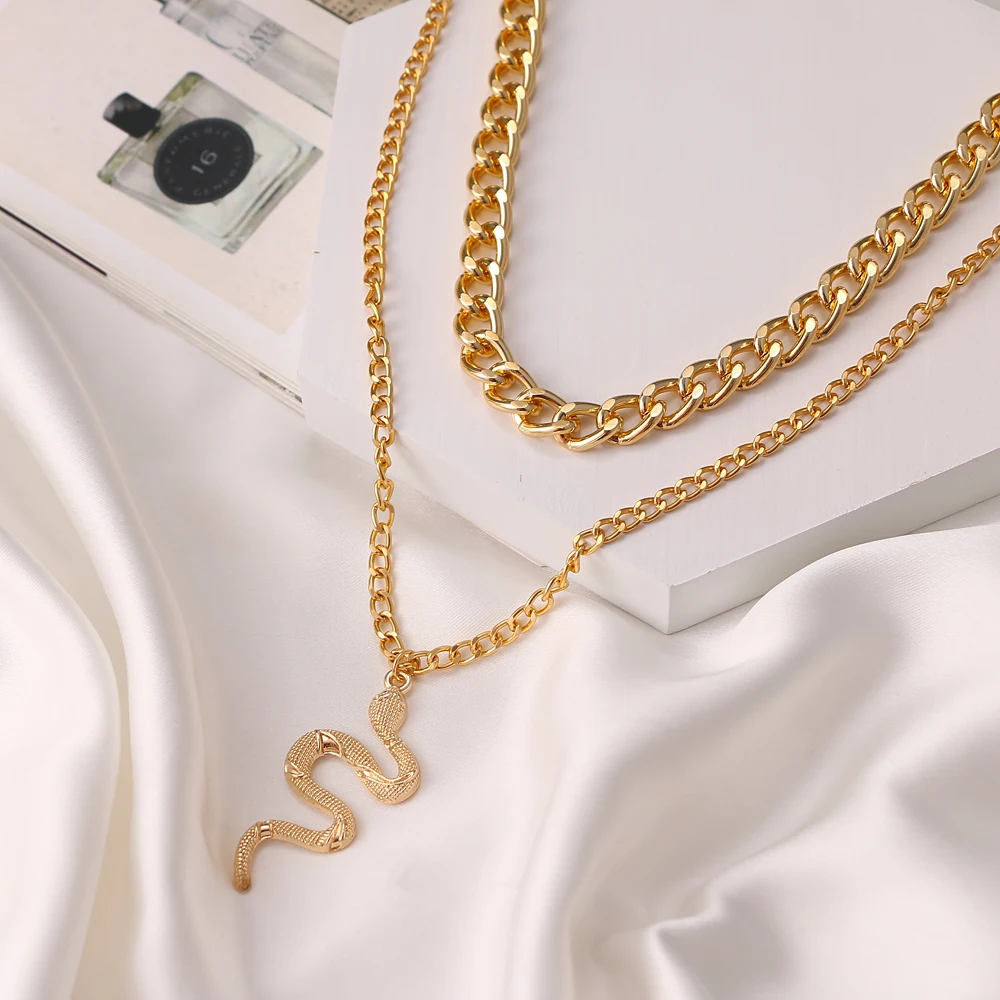 EN ретро многослойная цепочка с подвеской в виде змеи для женщин мо...