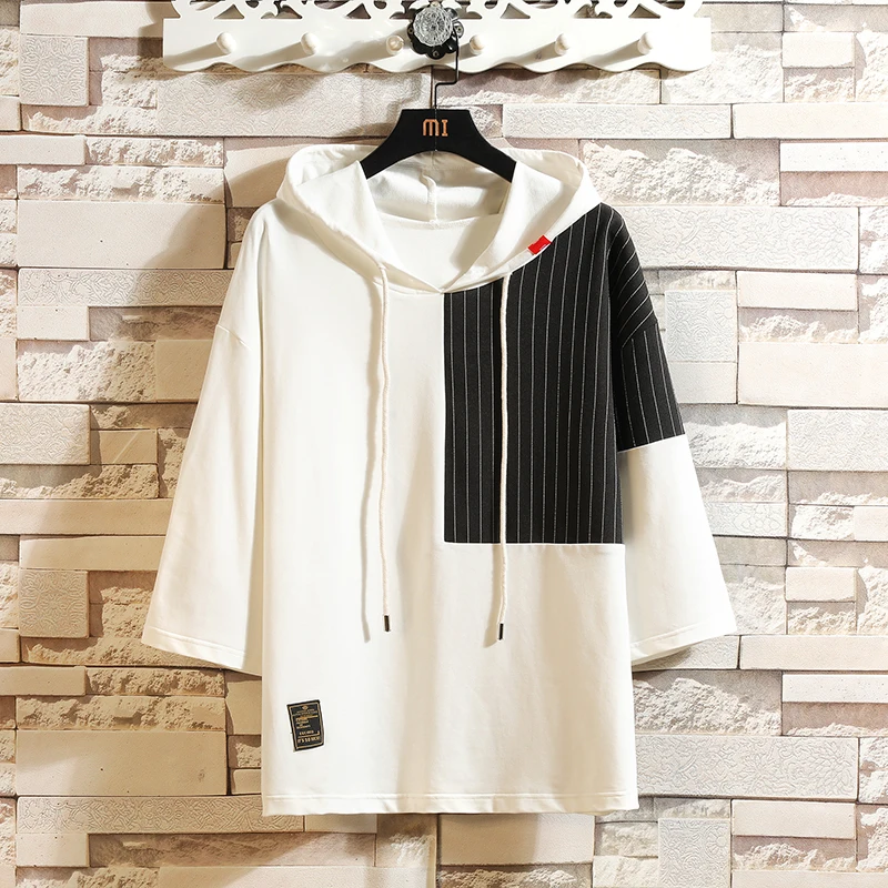 Модная Толстовка в стиле панк с короткими рукавами; Черно-белая муж...