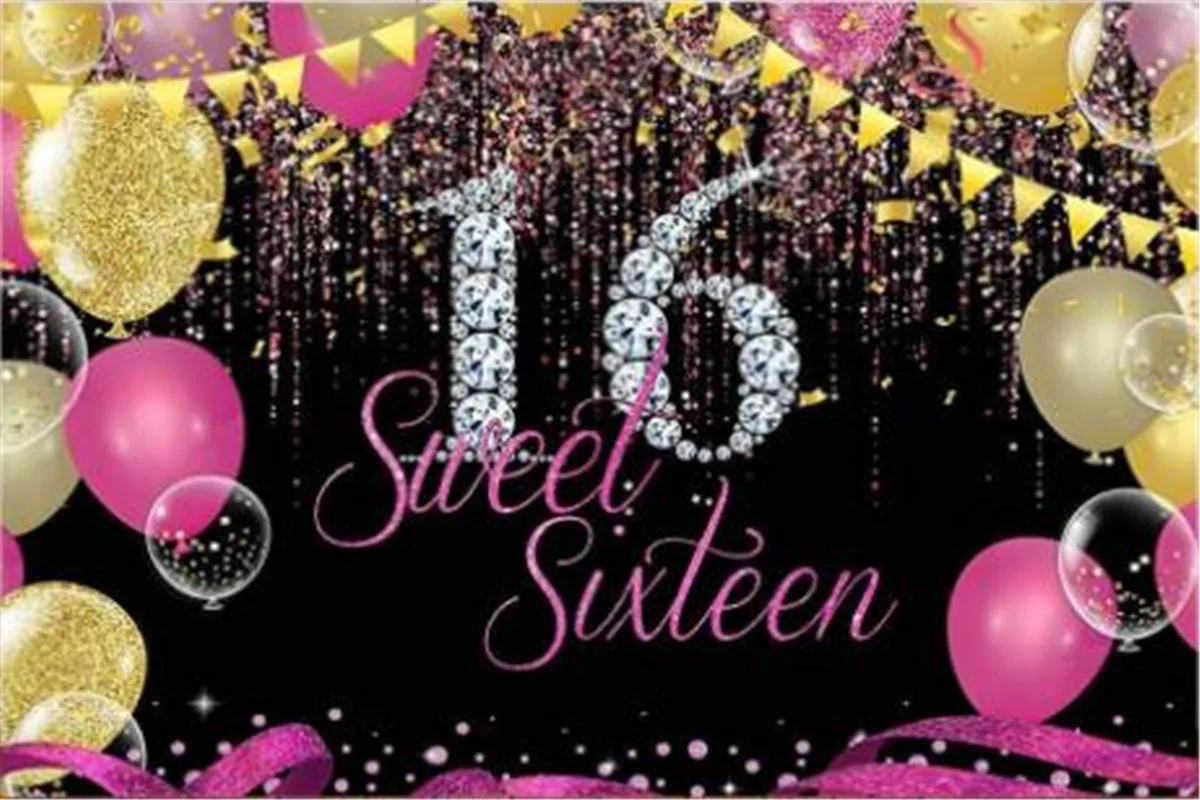 Фон для фотосъемки с изображением конфетти, розовых и золотых воздушных шаров