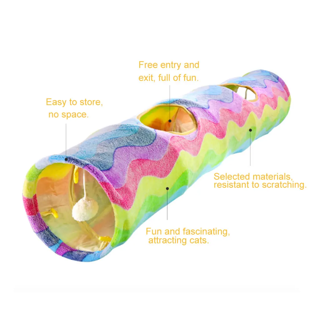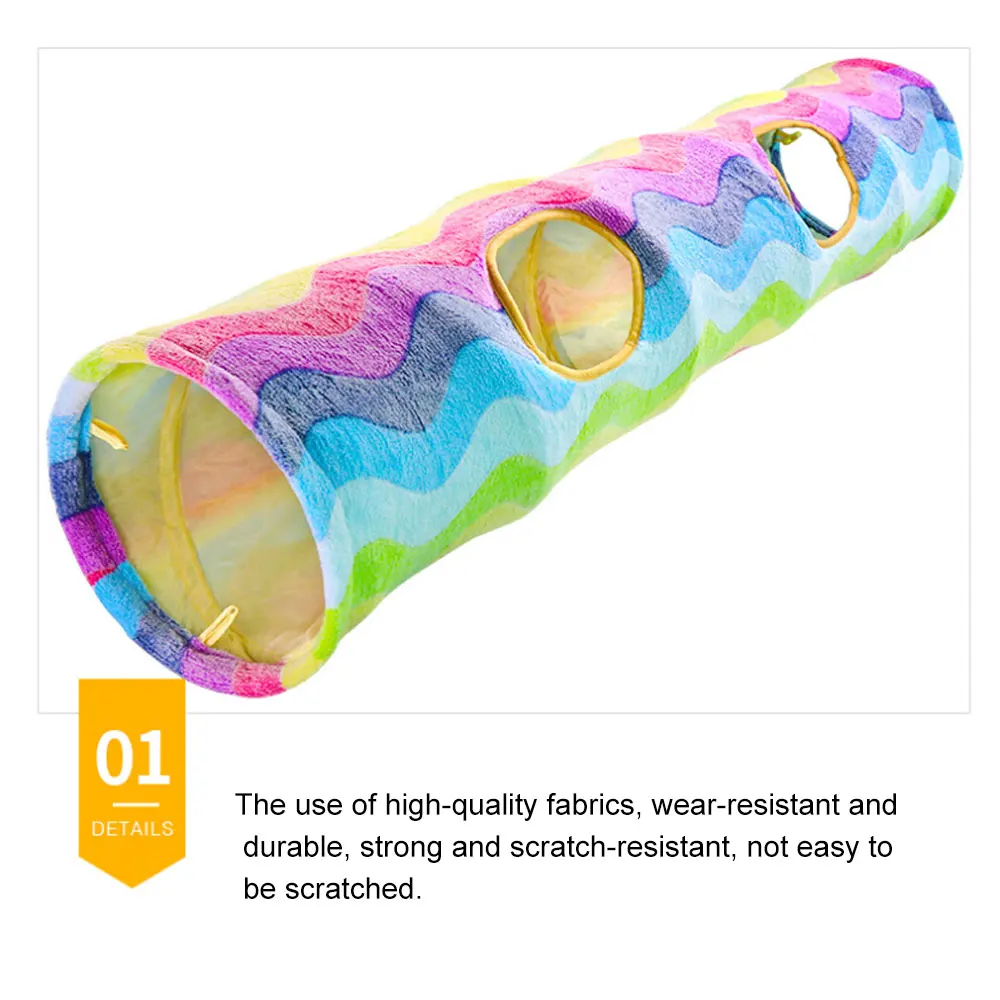 Складной туннель для кошек с радужными отверстиями, палатка для кошек с наполнителем, тренировочная игрушка для кошек, игровой туннель для животных