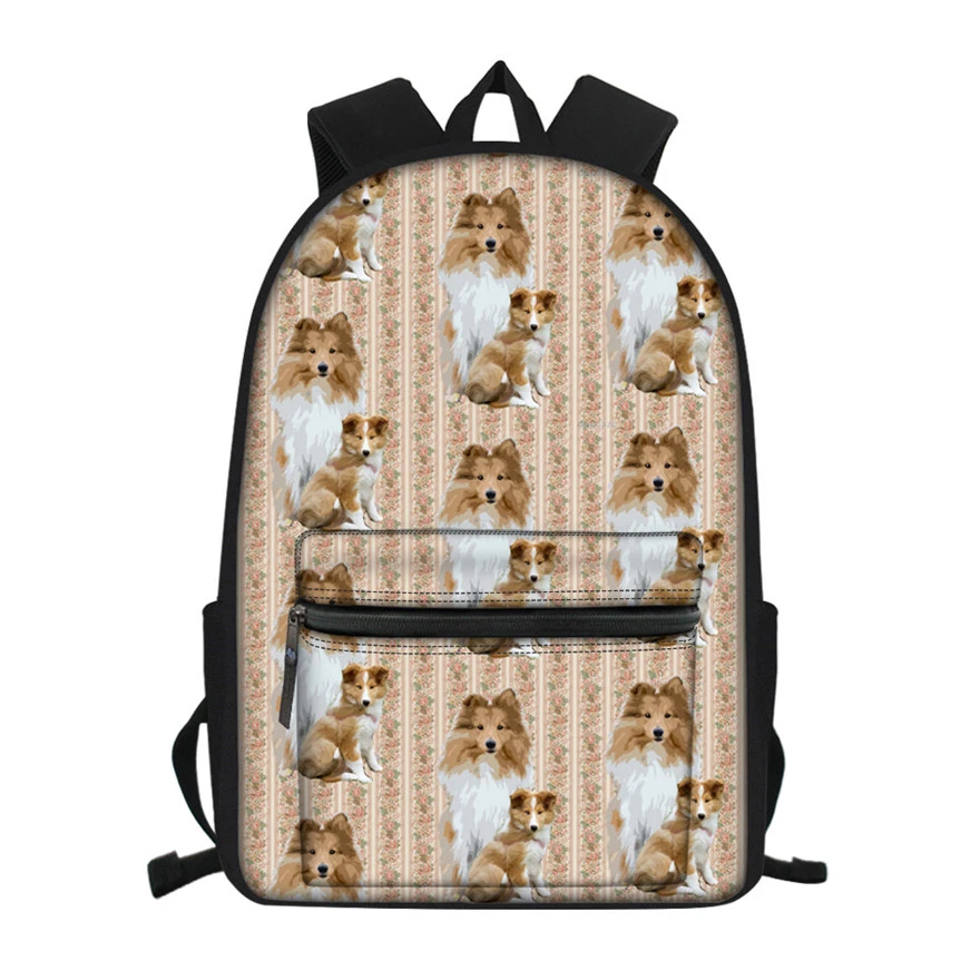 Милые школьные ранцы Sheltie с принтом собаки для девочек, Детские портфели для начальной школы, женский рюкзак, большие сумки для ноутбука, Детская сумка