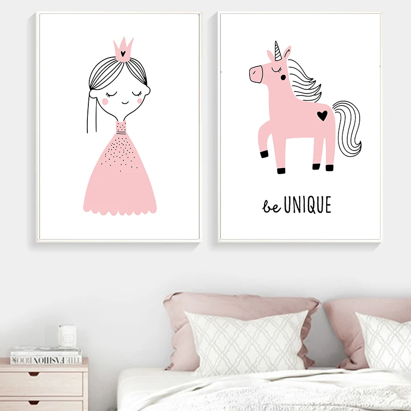Настенная картина в виде единорога для детской комнаты в скандинавском стиле с принтом ресниц, постер на холсте с изображением кролика, картина для детской комнаты, мультяшная картина, украшение для дома