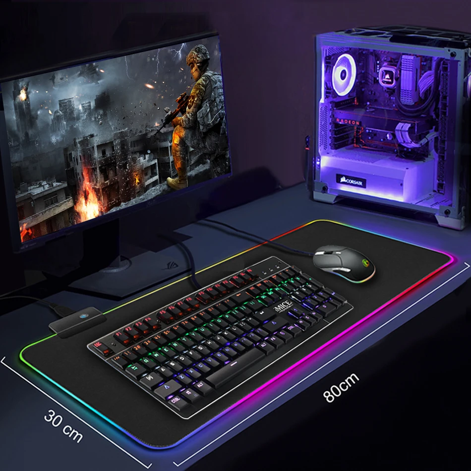 RGB коврик для мыши, большой игровой коврик для мыши для ПК, игровой коврик для компьютерной мыши, коврик для мыши XXL, Настольный коврик, коврик с подсветкой для клавиатуры