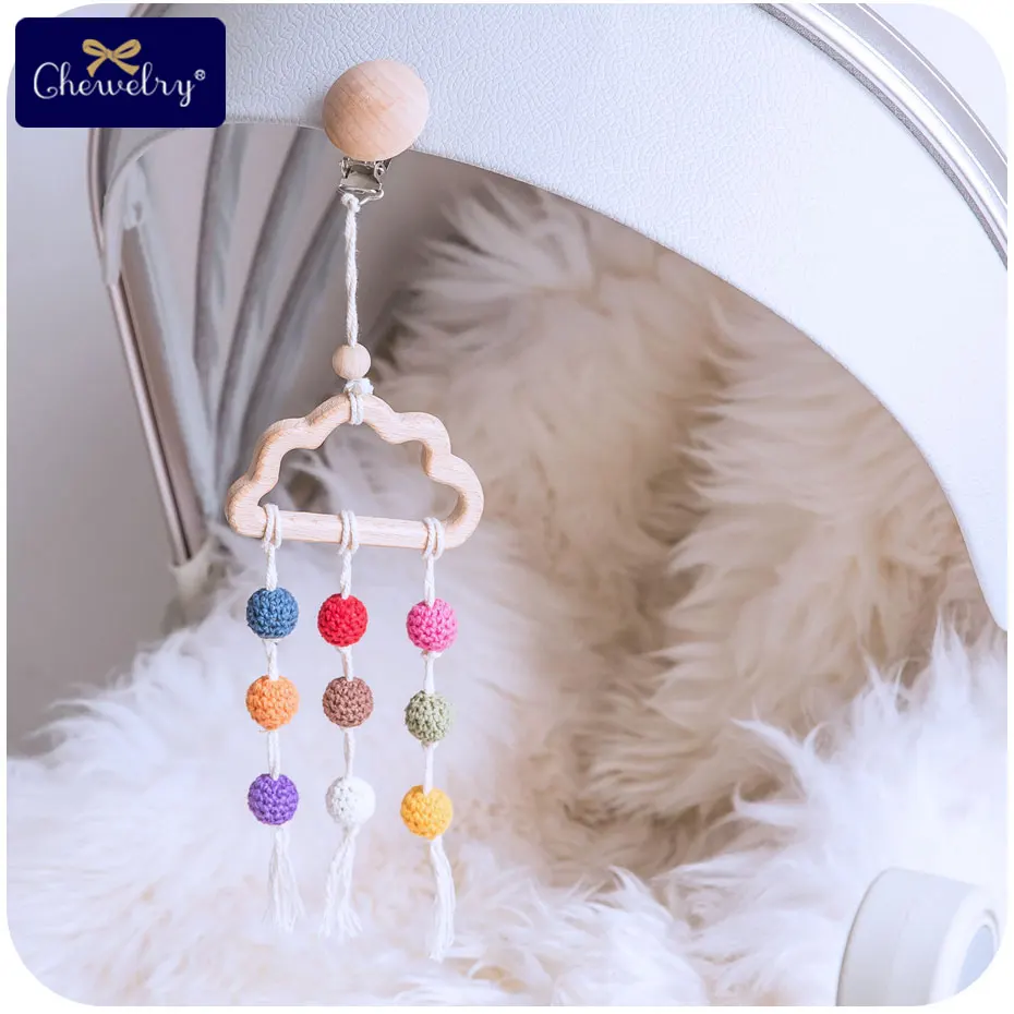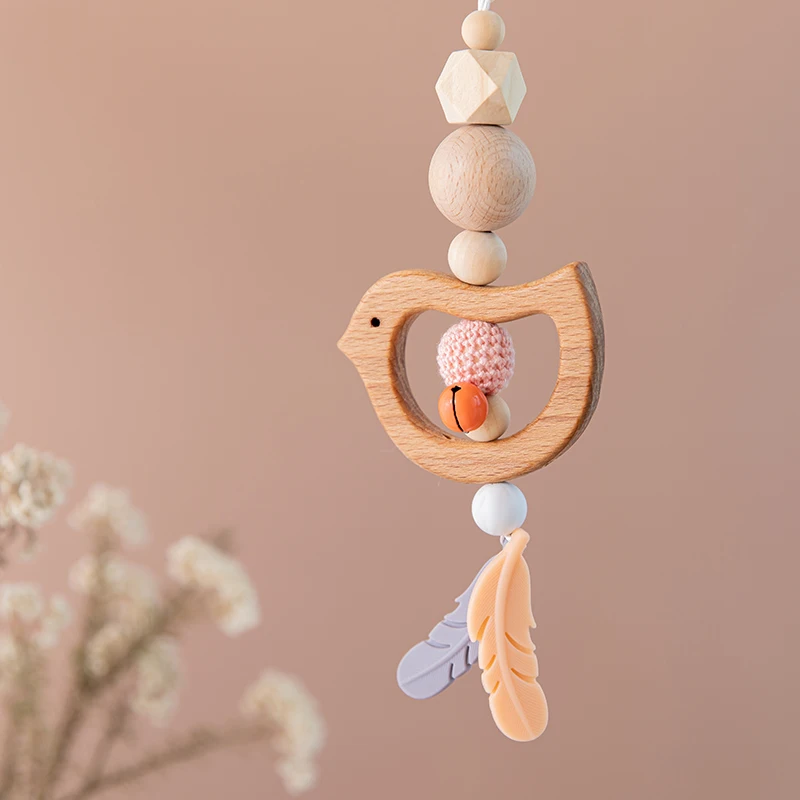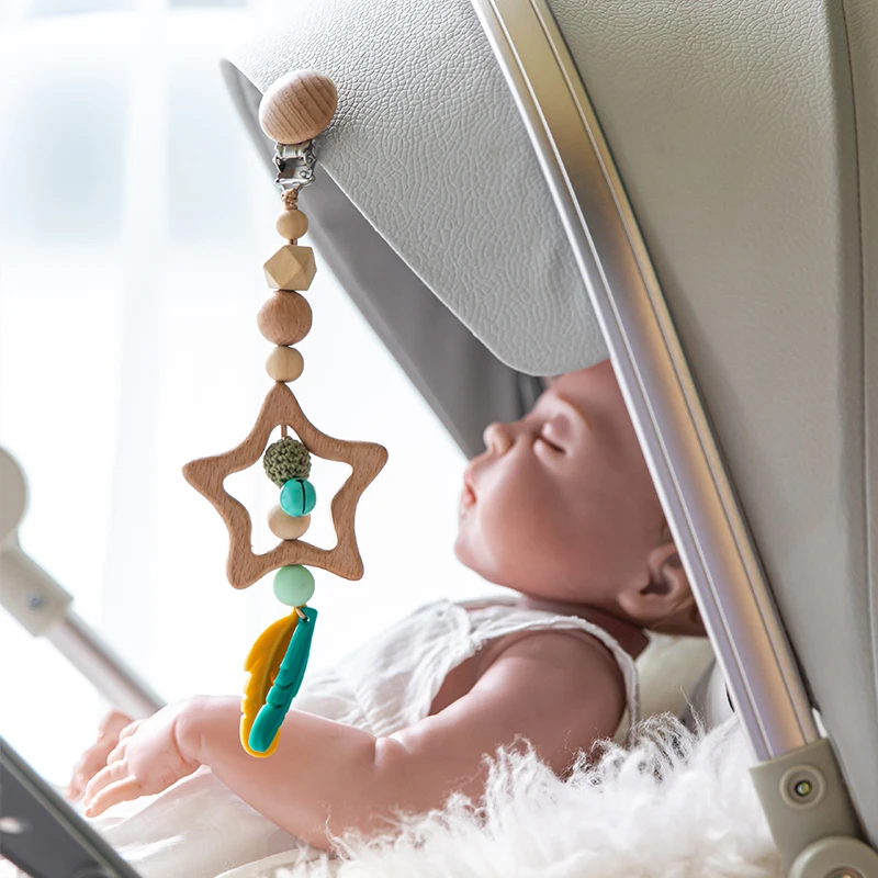 1 шт. деревянная Музыкальная погремушка животное звезда Мобильный держатель Прорезыватель кулон деревянный тренажерный зал грызун Силиконовые бусы для ожерелья Клип коляска арка