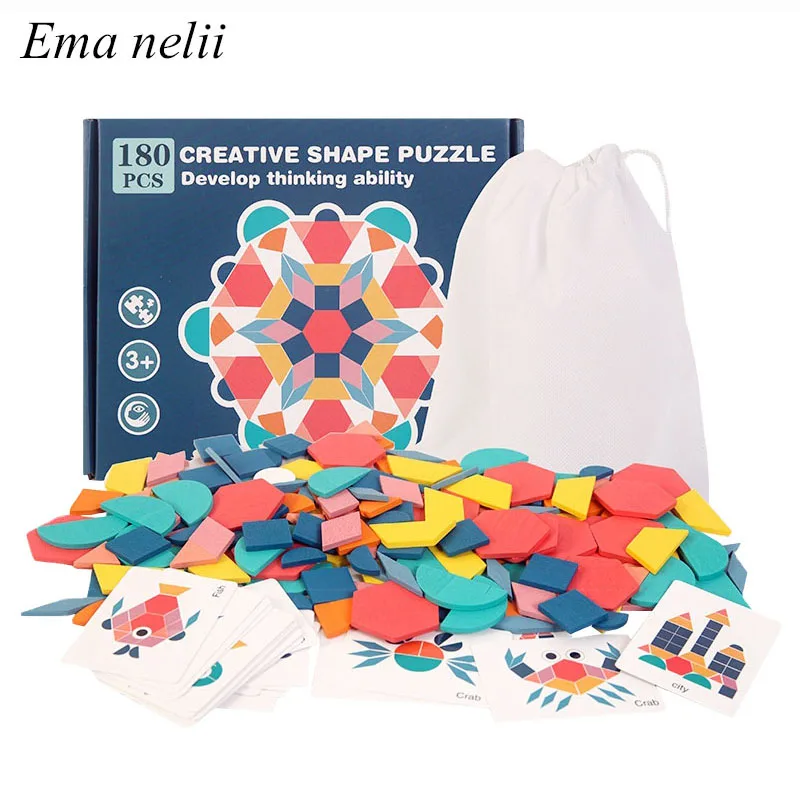 180 шт. Деревянные 3D головоломки Tangram Монтессори Обучающие игрушки подарки геометрической формы головоломки игрушки для детей Подарки