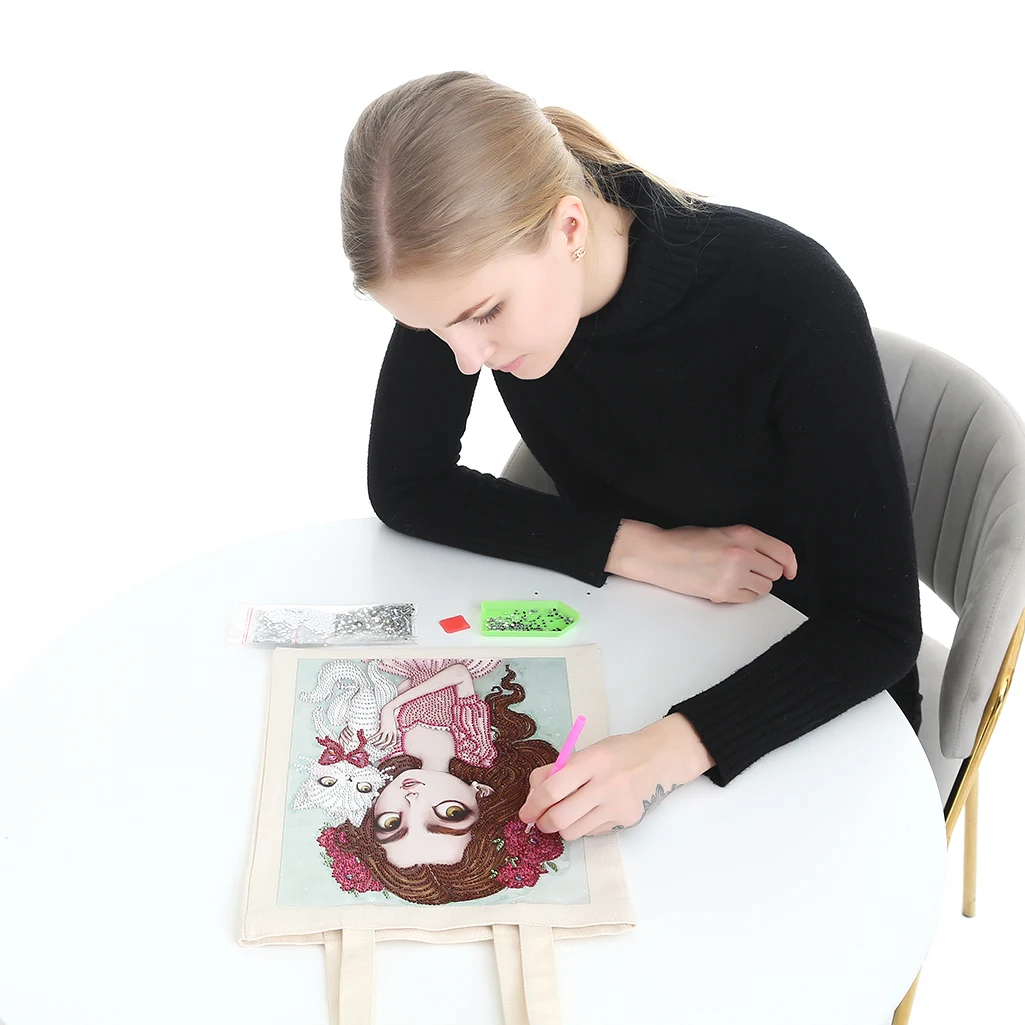 Сумка-тоут «сделай сам» с алмазной живописью:Сумка-тоут с алмазной росписью не только улучшит ваши практические навыки в отношениях с вашими детьми, но и сделает вашу индивидуальную сумку, создаст идеальное ощущение прохлады на каждый день.