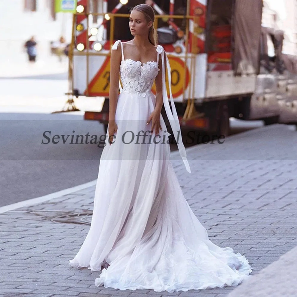 Кружевное свадебное платье Sevintage, пляжное платье невесты на тонких бретелях в стиле бохо, с аппликацией и открытой спиной, для свадебной вечеринки, на заказ, 2021