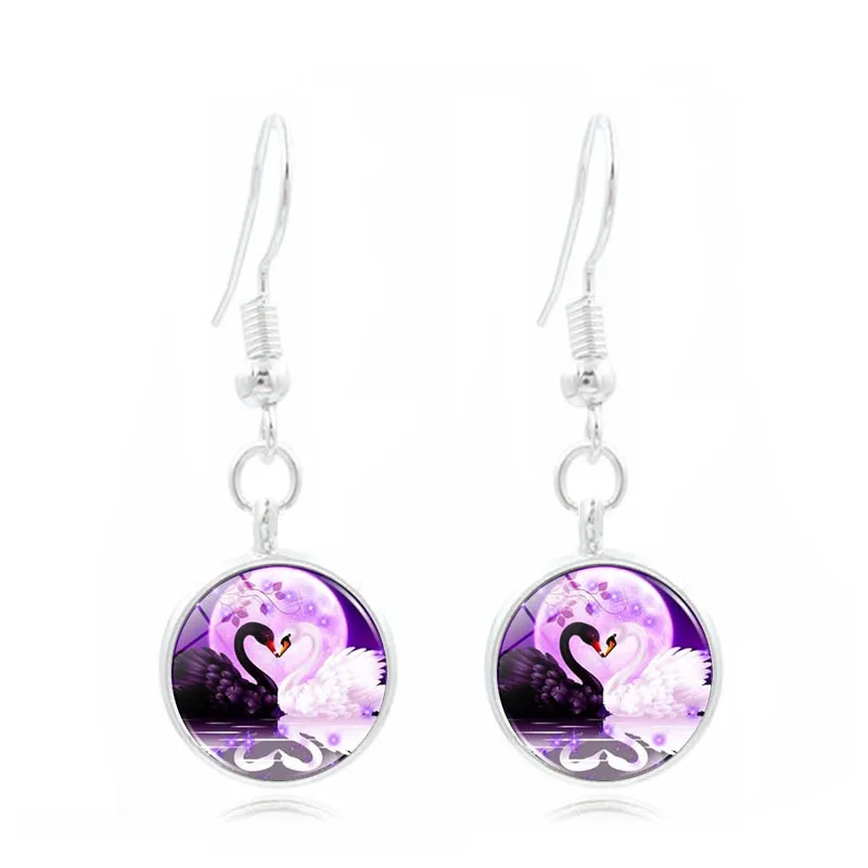 Лебедь ювелирные изделия черный, белый цвет с покрытием кулон в виде лебедя стекло кабошон ожерелье серьги-гвоздики набор браслетов всего 4 шт. набор украшений