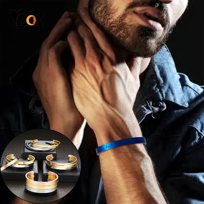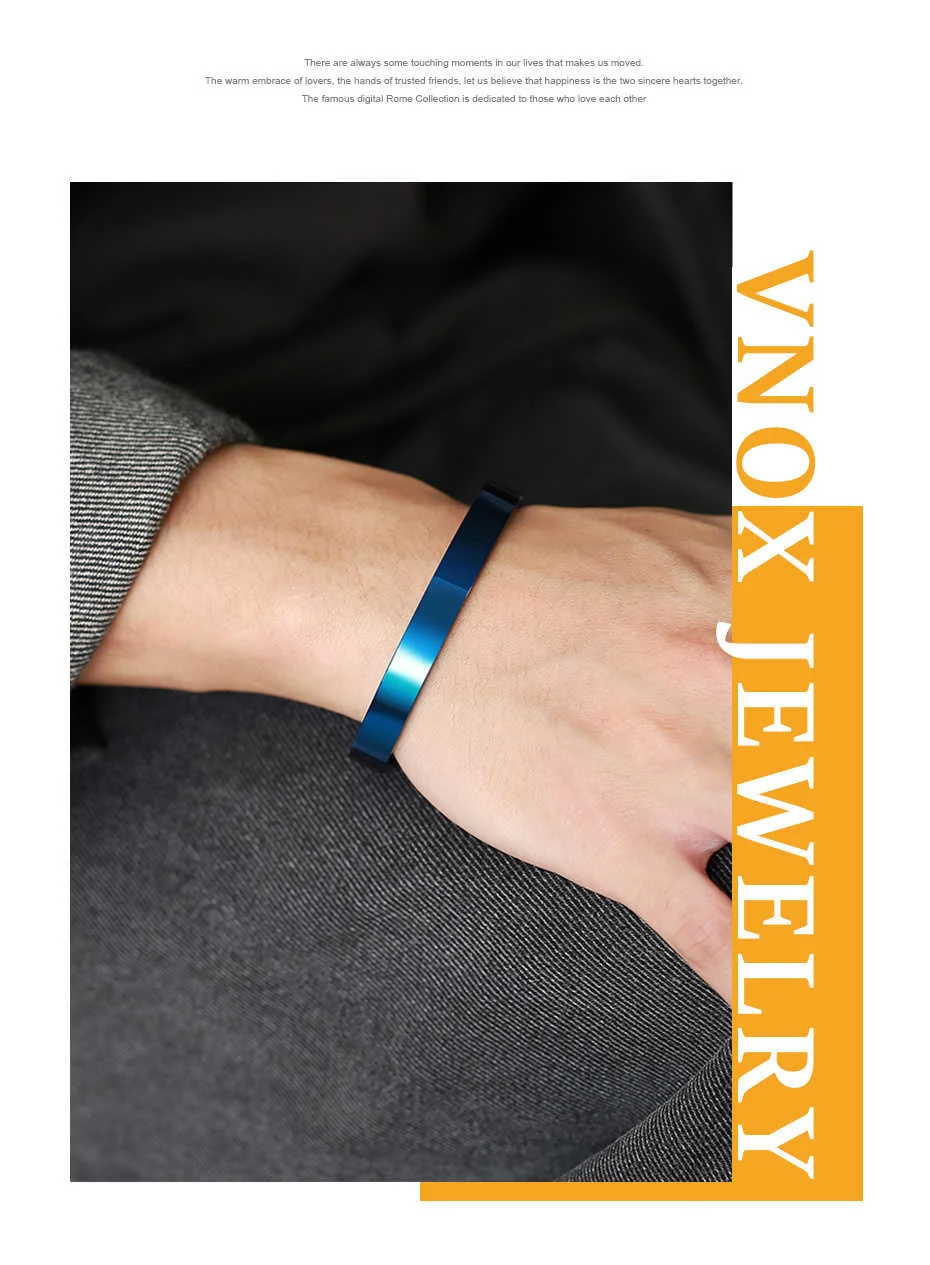 Браслет-манжета Vnox с индивидуальной гравировкой для женщин и мужчин, минималистичное металлическое украшение на запястье из нержавеющей стали, индивидуальный подарок