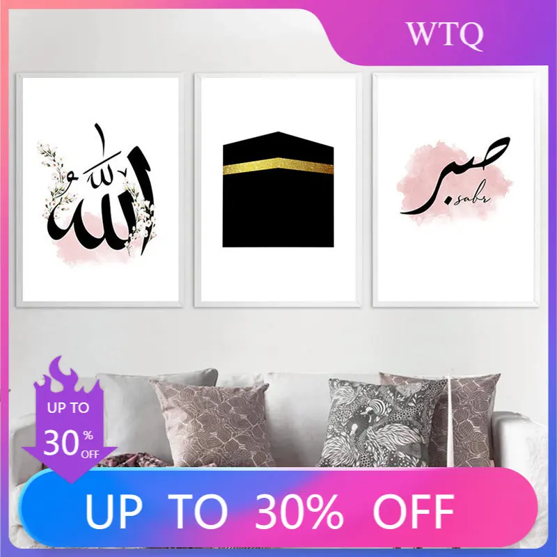 Аллах исламский настенный художественный плакат на холсте Mecca простой стиль минималистичный современный декоративный Рисунок Картина декор комнаты
