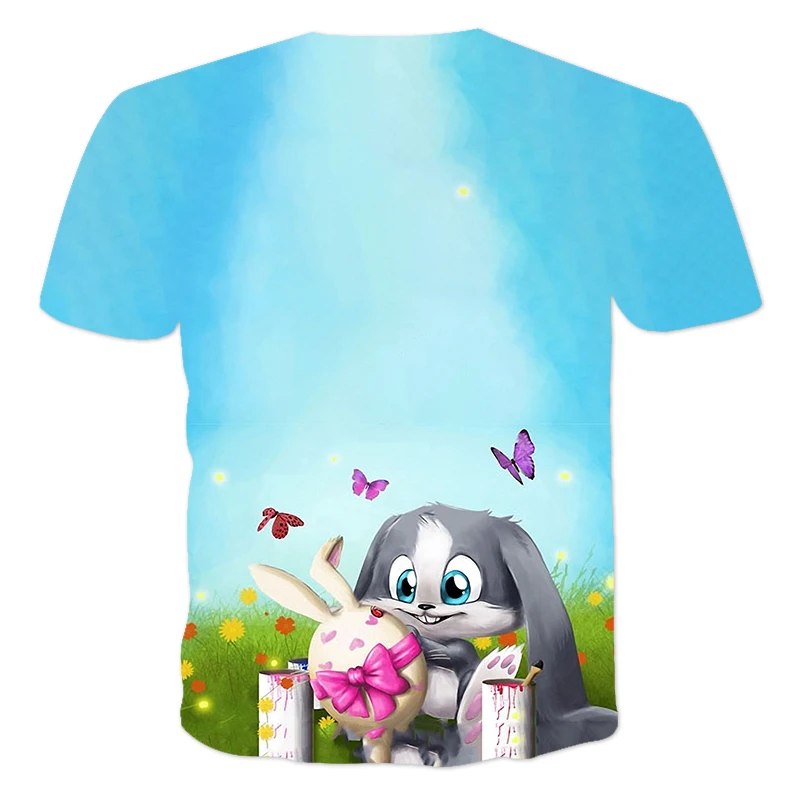 Новинка лета 2021, Детская футболка с 3D принтом мультяшного кролика, мужская и женская модная повседневная Милая одежда