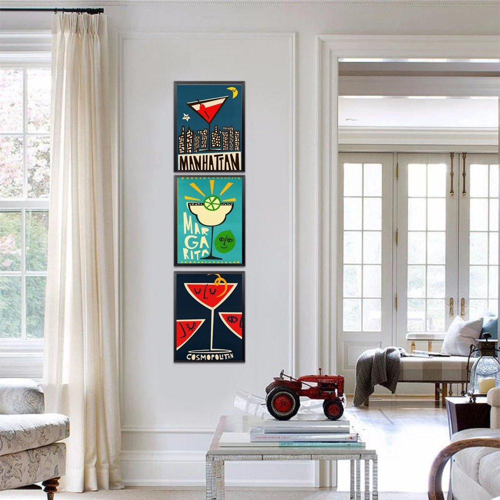 Мультфильм фруктовый сок постер Маргарита Манхэттен Искусство Печать Милая СТЕНА картина для клуба бара магазина дома декабрь