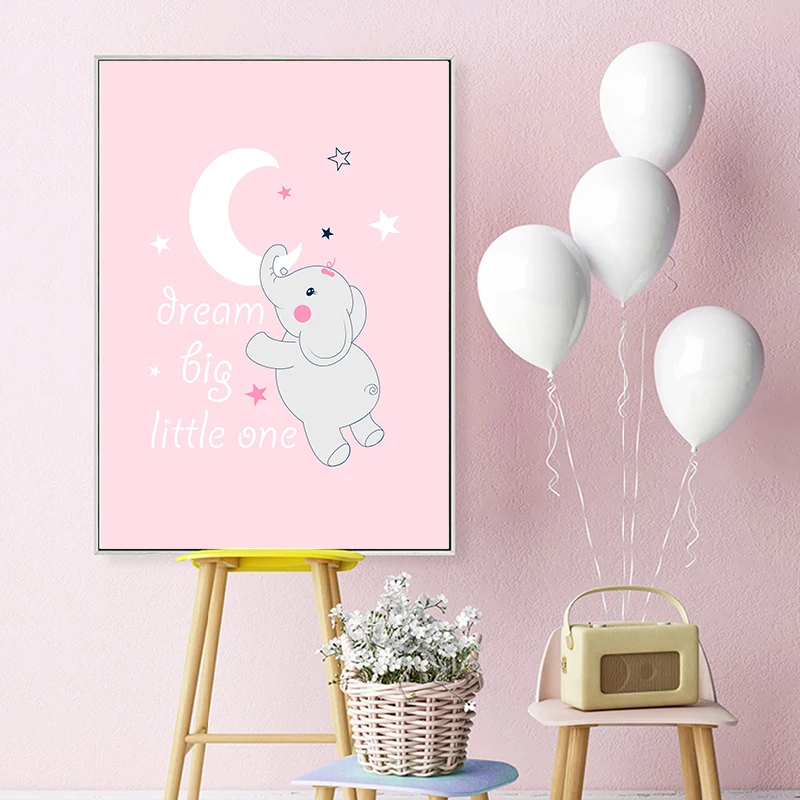Настенная картина для детской комнаты, постер на холсте с изображением розового слона, звезды, Луны, детской комнаты, скандинавский декор для детской спальни