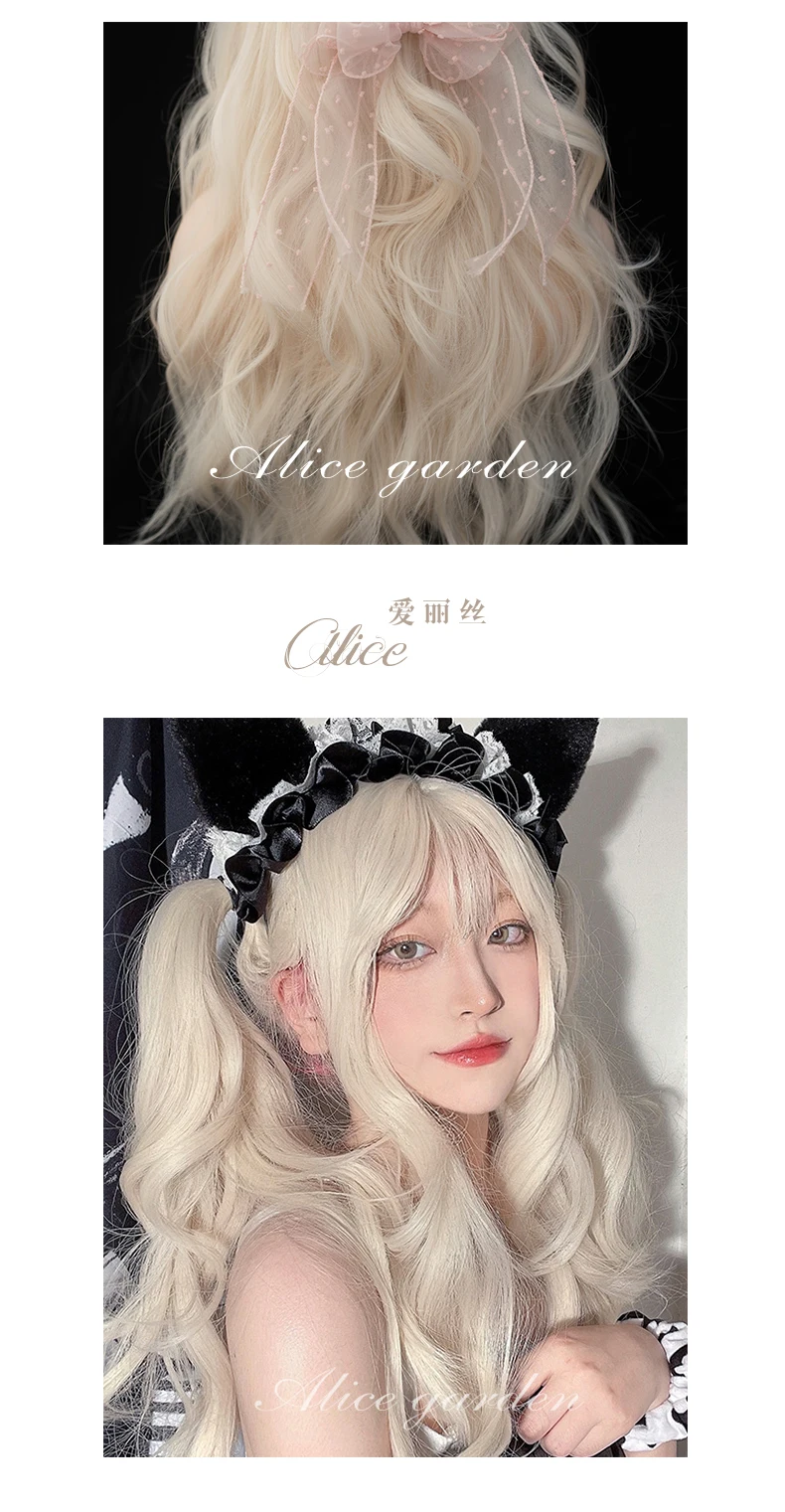 Золотой Блонд Лолита парик Харадзюку Феи косплей челка кудрявые дли...