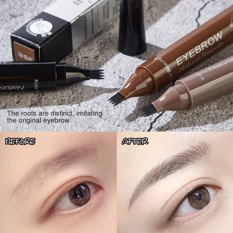 Тату-ручка с 4 вилками, водостойкая натуральная ручка для бровей, жидкий карандаш для бровей, тинт для бровей, стойкая простая в использовании Косметика TSLM1