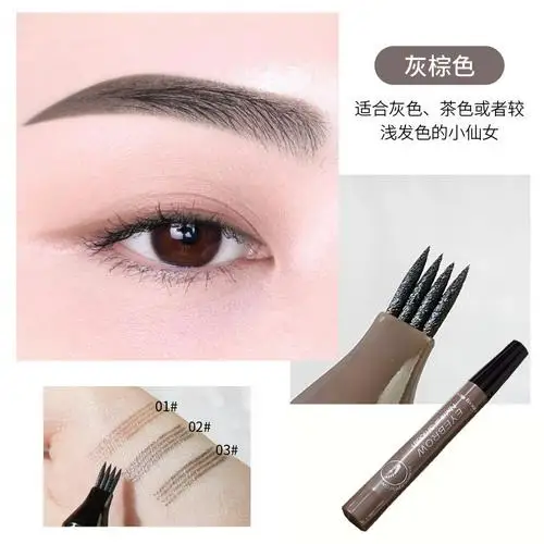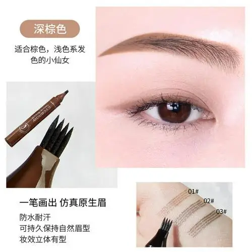Жидкий карандаш для бровей, водонепроницаемый карандаш для бровей, 4 вилки, кончик, тонкий эскиз, цветная ручка для татуажа бровей, жидкая водная ручка для бровей