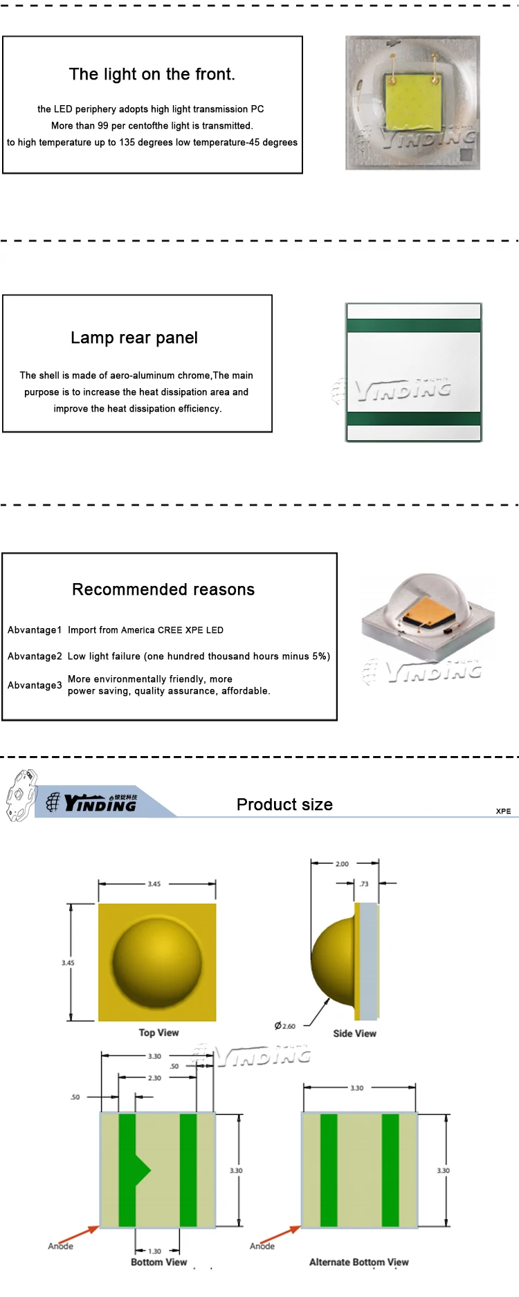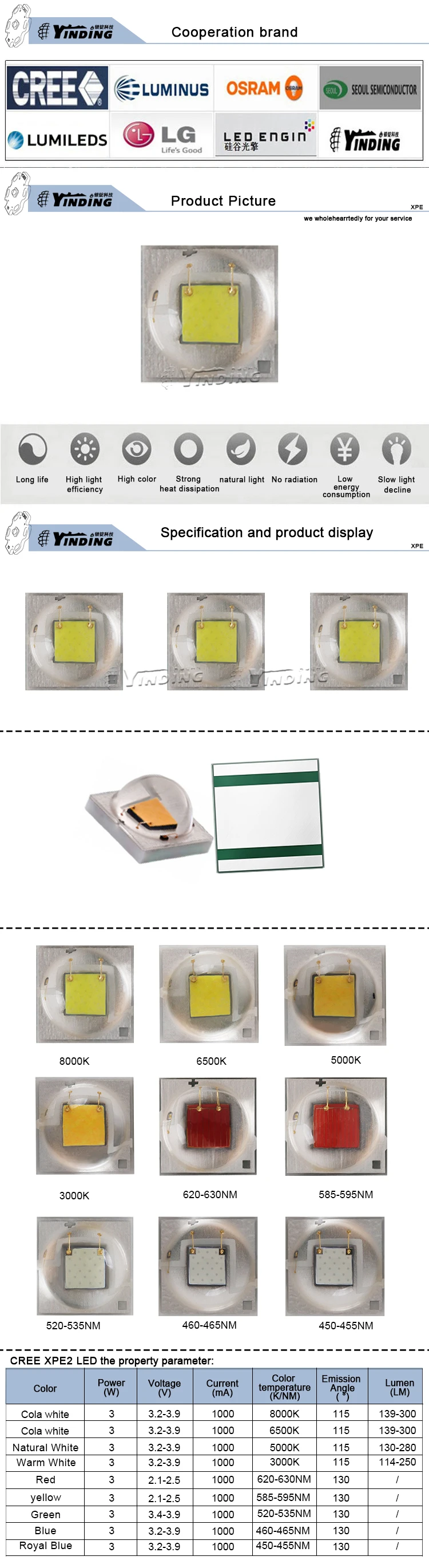 Светодиодный светильник SMD XLamp XPE2 высокой мощности, 5 светодиодов, 3 Вт, 8000 К, холодный белый, красный, зеленый цвет, сценическое освещение