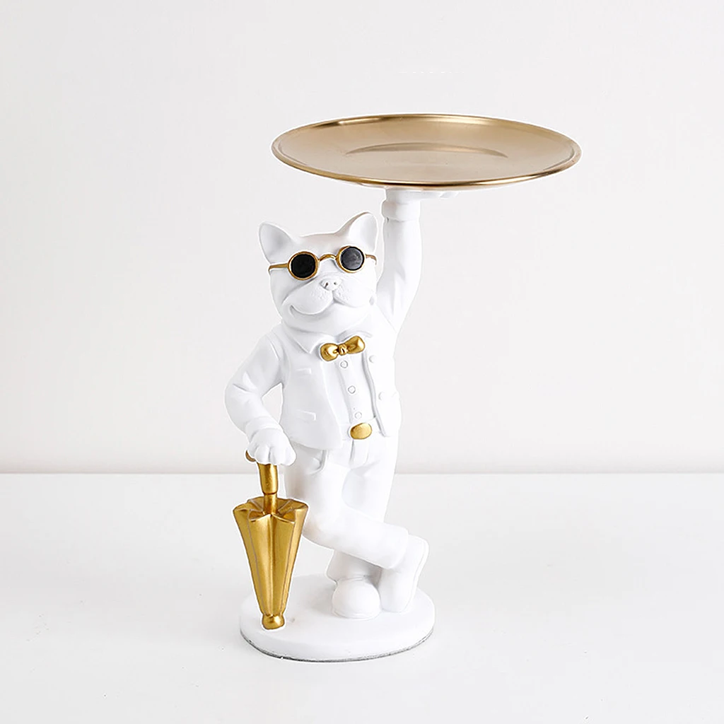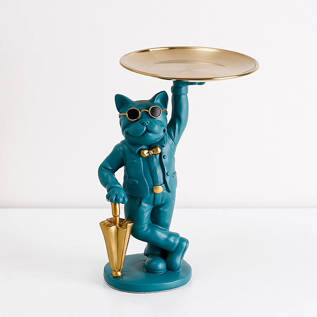 Лоток для хранения собак из смолы, в форме бульдога, для мелочи, ключей, колец, макияжа, парфюма, статуи домашнего орнамента
