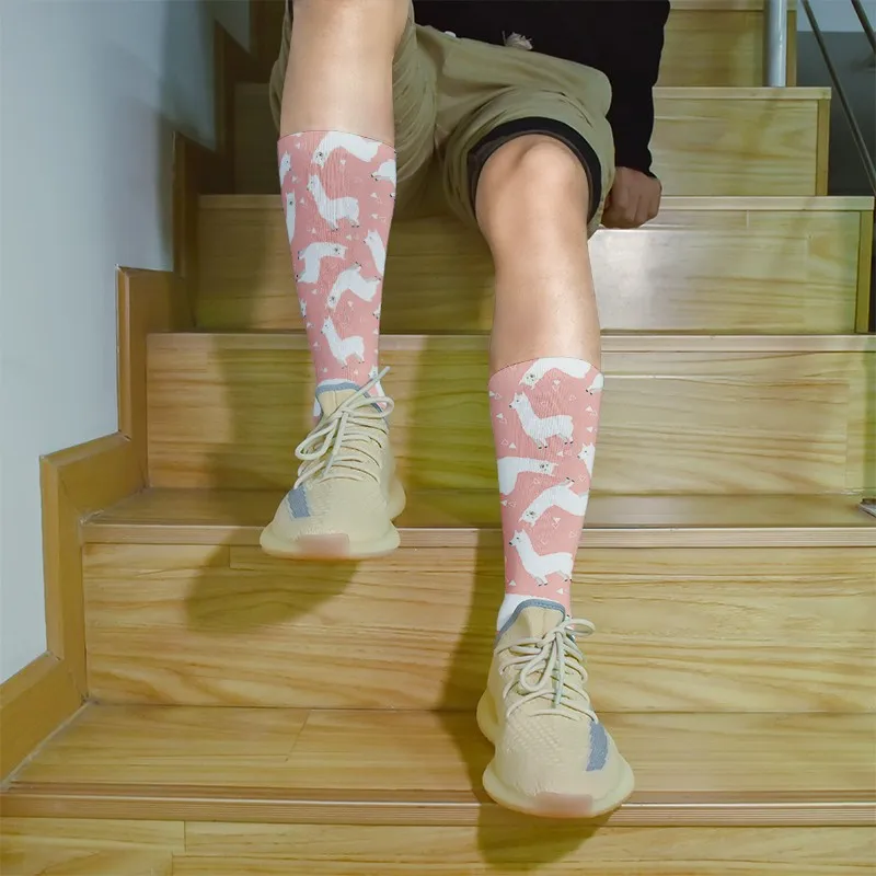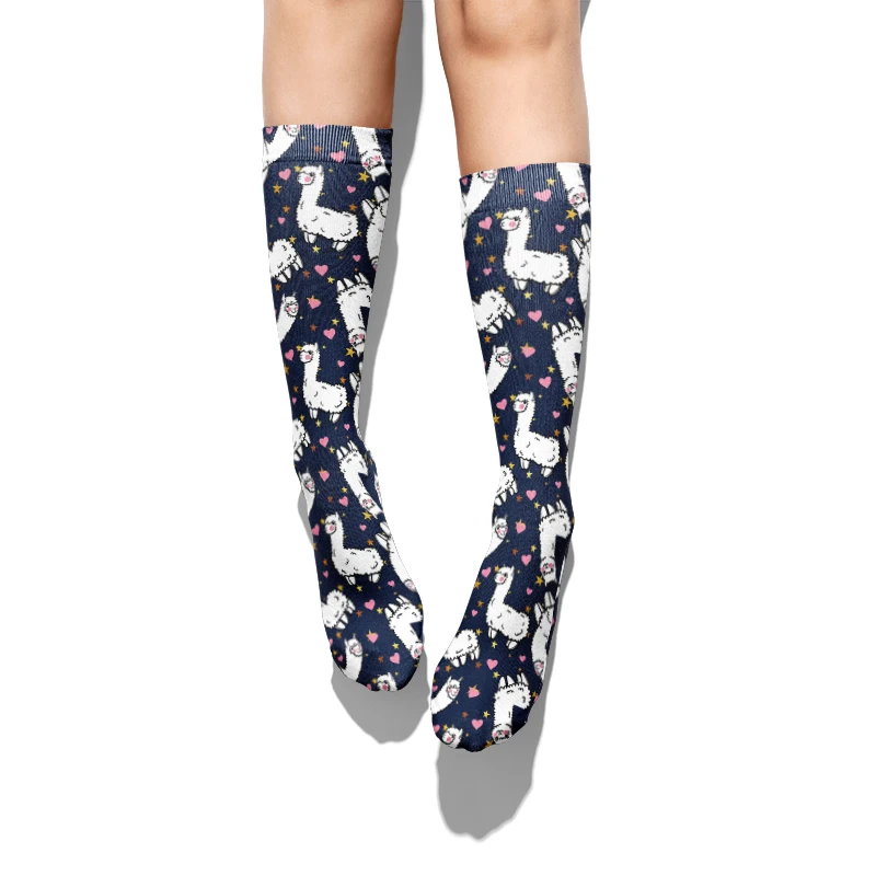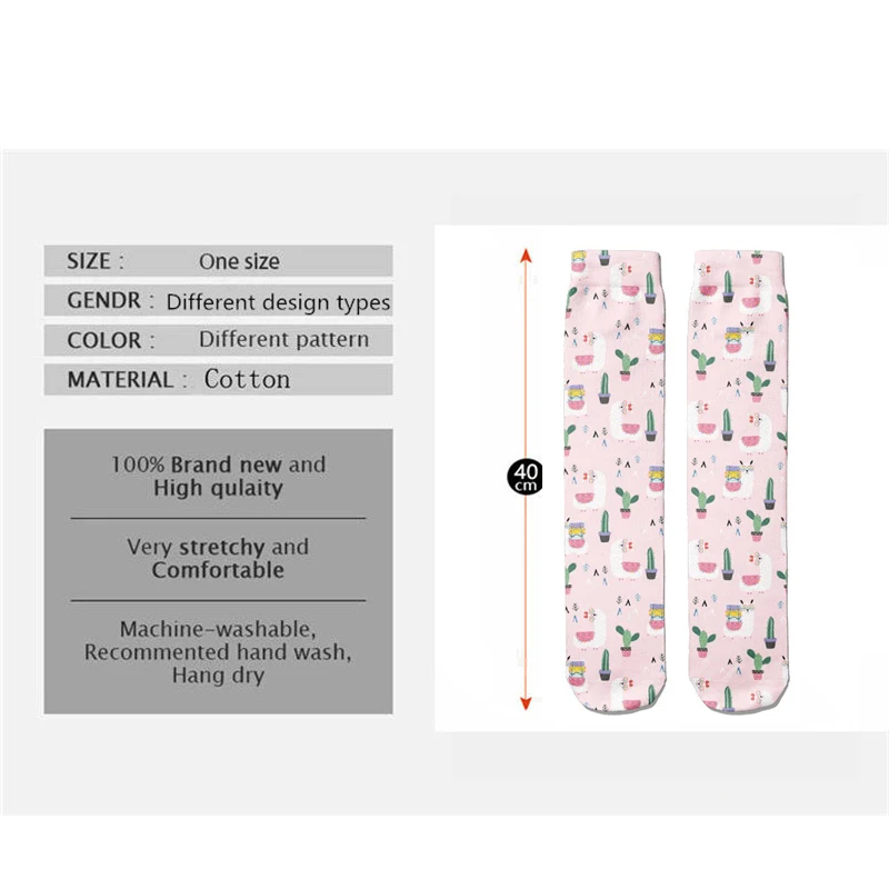 Милые женские носки с принтом альпака, забавные модные счастливые длинные носки для девочек, хлопковые удобные повседневные носки до бедра в стиле Харадзюку для женщин
