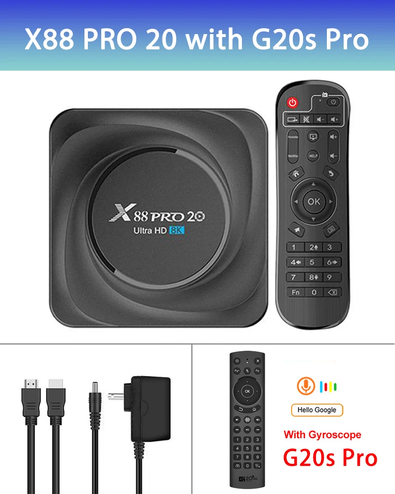 -ТВ-приставка X88 PRO 20-1 шт.-1 клавиатура (опционально)-1 пульт дистанционного управления-1 блок питания-1 кабель HD-1 Руководство пользователя