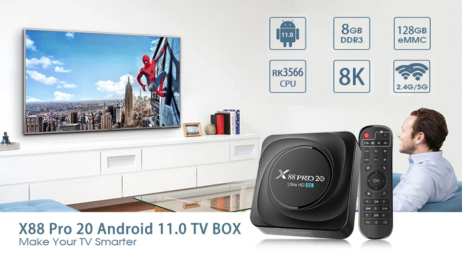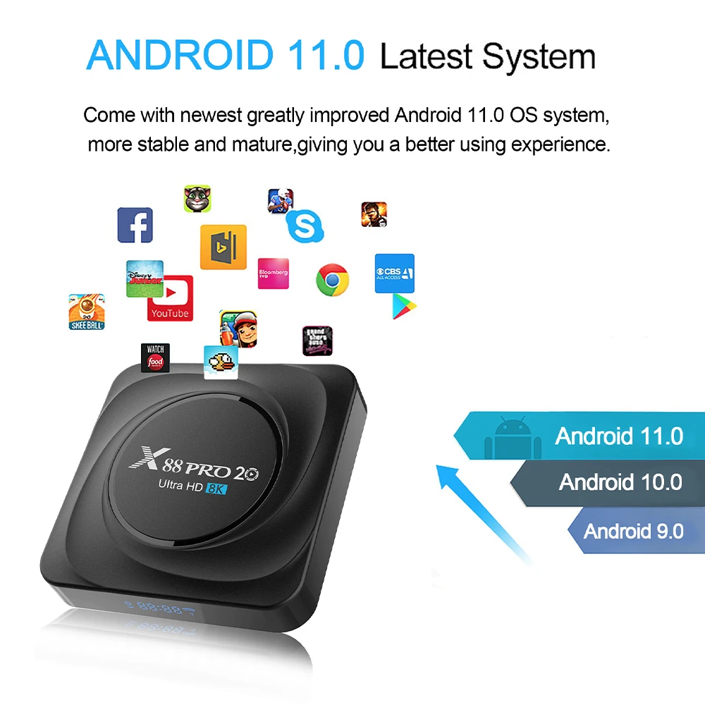x88 Pro 20 RK3566 Android 11,0 Smart TV Box 2021 8K медиаплеер Netflix 2,4G5G Wi-Fi 1000 м 8 Гб оперативной памяти 128 ГБ Rom Google Play x88pro