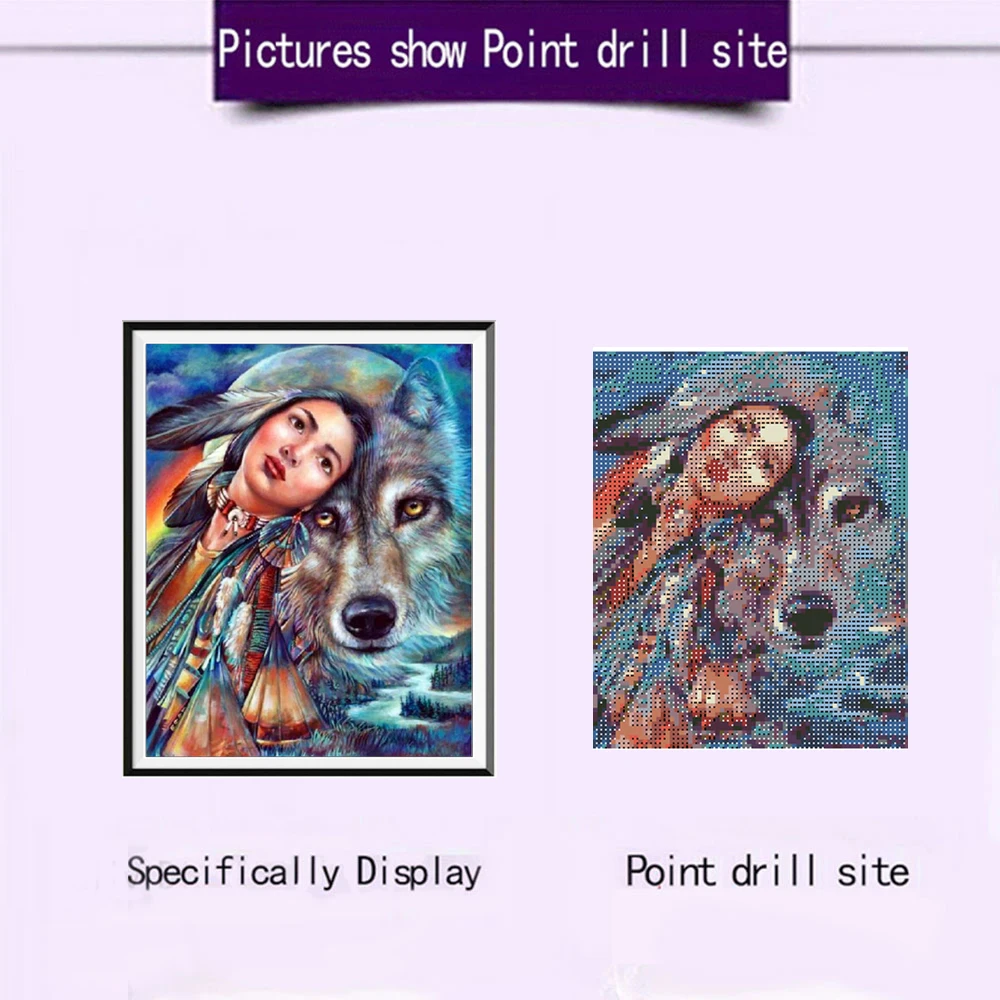 5D со стразами идеально сочетаются с картиной punto de Крус Lobo со...