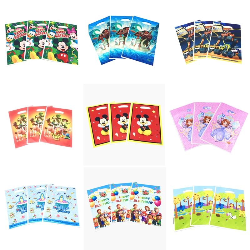 Игрушечные машинки Disney, Микки Мауса, принцесса Белль, тематическая Подарочная сумка для вечерние ринки, украшение для вечеринки, пластиковый пакет для конфет для детей, праздничные принадлежности для вечеринки