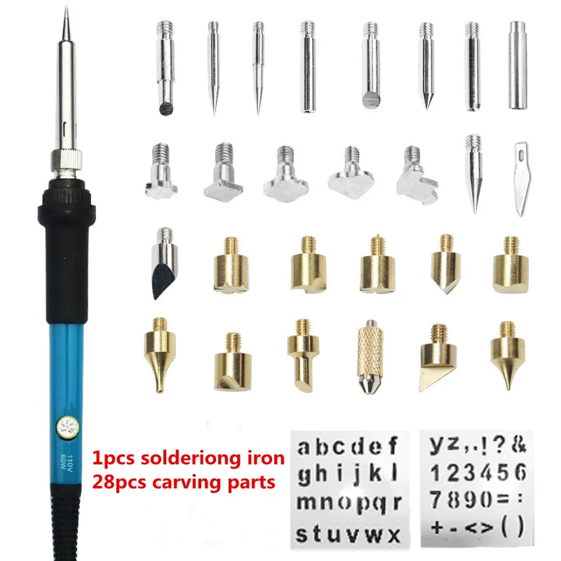 60 Вт дровяной печи резьба пирография ручка комплект Регулируемый Температура паяльник для сварки деревянных тиснение сжигание ремонтный набор