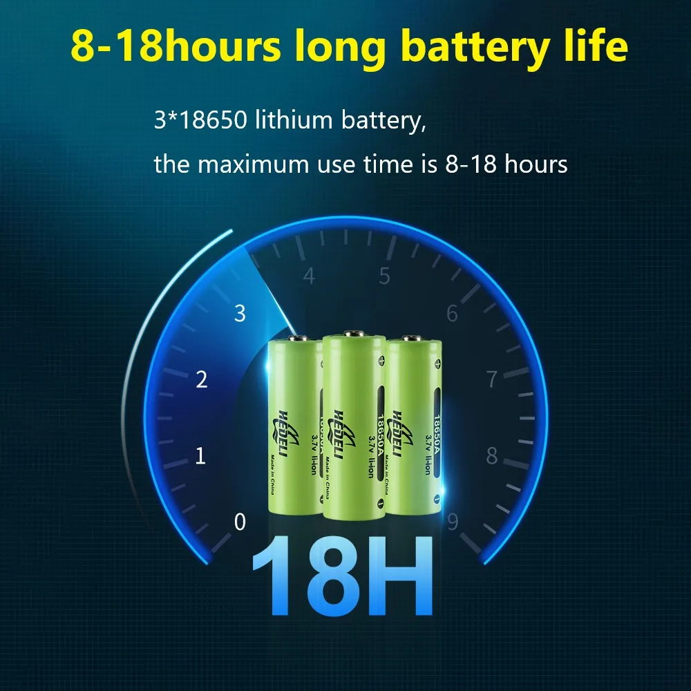 Предназначен для длительных часов в ночное время♥Новая улучшенная версия сверхвысокой яркости XHP100.2 с различными прожекторами, длинным фокусным расстоянием и четким зрением.♥Дальность стрельбы может достигать 500-1000 метров.♥В коробке две губки, которые могут уменьшить повреждение изделия при транспортировке.♥Аккумулятор 3*18650, эквивалентный четырем обычным аккумуляторам, срок службы батареи дольше, чем обычные 9000 мАч, более долговечный.♥Двусторонняя Регулировка кольца головки, герметичность может быть свободно отрегулирована.♥90 градусов реальный можно отрегулировать свободно, масштабирование гибкое, диапазон освещения широкий, светильник более концентрированный.♥Легкая модернизированная конструкция, не давит на голову, не давит на ношение в течение всего дня.♥Вогнутая конструкция, хороший эффект отведения тепла, легко решить проблему отведения тепла и химической завивки.♥Многофункциональная быстрая USB-зарядка, безопасная, стабильная и эффективная.♥Благодаря функции мобильного источника питания он может заряжать мобильный телефон и отображать источник питания в режиме реального времени, который имеет двойное назначение.♥Уровень водонепроницаемости может достигать уровня 6, что позволяет легко справиться с суровой внешней средой в ночное время.