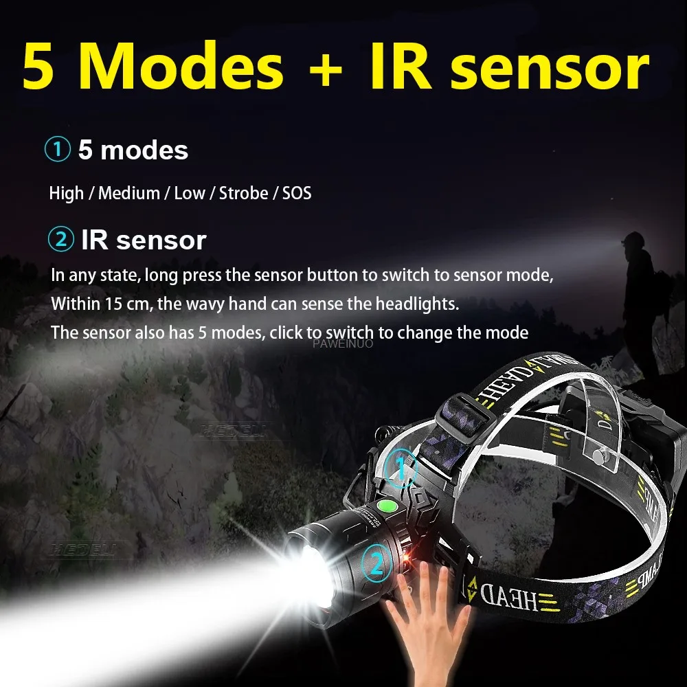 Описание товара♥Бренд: HEDELI♥Модель светодиодной лампы: фитиль XHP100.2 (новое обновление)♥Время освещения: 8-18 часов (проверка реального времени)♥Функция датчика: инфракрасный датчик♥Функция внешнего аккумулятора: Да♥Режим масштабирования: телескопический зум♥Класс водонепроницаемости: IPX6♥Режим: 5 режимов (100%-50%-25%-вспышка-SOS)♥Дисплей мощности: 100%-75%-50%-25%