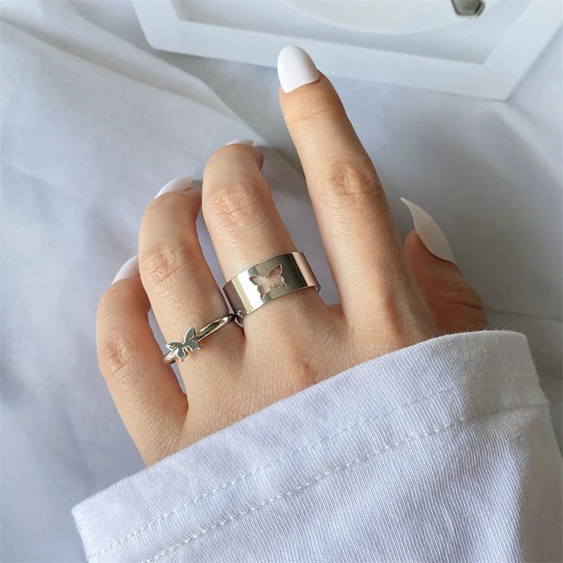 Кольцо с бабочкой, в стиле панк, для женщин, мужчин, золотого и серебряного цвета, для влюбленных, пары, набор колец с бабочкой, свадебные украшения