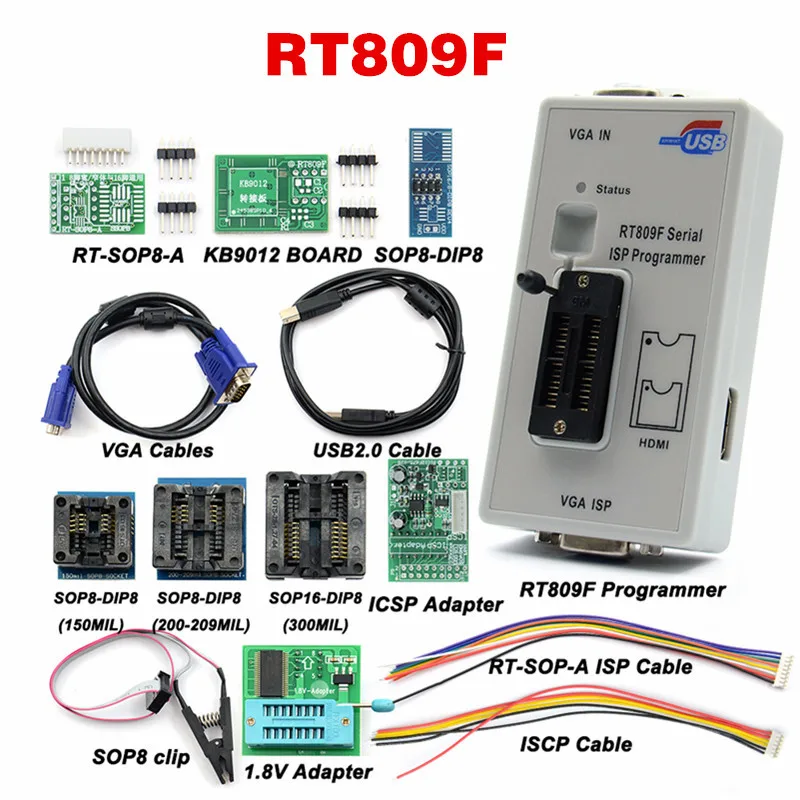 Описание: Этот RT809F не включает CD, если вам нужно программное обеспечение, пожалуйста, отправьте нам сообщение, мы отправим вам ссылку, спасибоПосылка включает в себя:1 x тестовый зажим SOP8 IC с базовым адаптеромАдаптер SOP8 150MIL-1 шт.1 x SOP8 К DIP8 200-208mil Adpater1 x SOP16 to DIP16 150mil Adpater1 x SOP16 to DIP8 Adpater 300milПростой адаптер SOP8/SOP16/ MSOP8/sop8-DIP16-1 шт.1x1,8 V адаптер переменного токаАдаптер TSSOP8/SSOP8-1 шт.1 x ICSP доска с 6P проводом1 x KB9012 Borad1 х RT-SOP8-A простой адаптер1 x RT809F программист с посылка1 х USB кабель1 кабель VGA1 x Кабель EDIDОсобенности:1) чтения и записи 8 pin и 16 наклонных штрихов, чипсов, которые обычно используются на материнская плата компьютера, ноутбука, ЖК-дисплей, маршрутизаторов, и даже мелкую бытовую технику. 2) чтение и запись памяти SPD DDR1/DDR2/DDR3 Бесплатный чип демонтажа, особенно поддержка 34C02 и других специальных номеров деталей. 3) Поддержка ноутбука 8 pin и 14 pin пароль чип и чип батареи (особенно 24RF08/6480AR/BR9080/9016 специальные номера частей 4) поддерживает все серии 24,IIC EEPROM памяти. Кроме того, он может автоматически идентифицировать модель чипа от 24C01 до 24C16, автоматическое определение уровня защиты записи 7-го штыря 24 серий. 5) поддерживает все серии 25 и 26 SPI флэш-памяти, поддержка идентификации чипов номер части автоматически, емкость до 256 Мбит.6) поддерживает все серии 93 MircroWire памяти, включая Японские специальные чипы.7) это единственный программист, который имеет функцию поддержки чипа RTD2120, два банка читает и записывает онлайн. Включая BANK0, который входит в прошивку, и BANK1 область, в которой меню. Он может читать двойной банк всего за 6 секунд. Поддерживает три банка RTD2122 для чтения и записи онлайн.8) Поддержка чтения и записи DDC-EDID данных ЖК-дисплея и ЖК-телевизора онлайн. Очень легко решить проблемы с данными EDID.9) Поддержка чтения и записи экрана ноутбука EDID данных онлайн, очень легко решить проблему DELL и SONY ноутбука выбрать экран. В нашем магазине имеются провода для экрана.10) Поддержка Leroy, Ding Branch, Rainbow Star, Triumph, Kang Yue и Wang Jie general driver board. Напишите плату драйвера MCU через порт VGA, не вынимая компоненты из платы. Программатор имеет новую дополнительную функцию, он может восстановить чипы. Если плата была повреждена при программировании, она может нормально работать с этой функцией. Уменьшает многие вопросы.11) Поддержка чтения и записи прошивки ЖК-дисплея и материнской платы ТВ онлайн и вне линии. Поддержка TPV, Proview, Samsung, LG, ACER, LENOVO, HP, IBM, BENQ, HKC, Hisense, Skyworth, Konka, Changhong, TCL , Haier, Prima и других основных брендов, поддержка NOVATEK, MTK, MST, Genesis, TSUM, SE, FT, REALTEK Winbond WELTEND, MySoN, Китай (материк) и азии и PIXELWORKS, чипсет решение, вы можете использовать официальное ISP программного обеспечения или третьей вечерние программного обеспечения, принимайте во внимание функции целостности и инструкция удобство в использовании.12) Поддержка моделей Samsung, Philips, AOC, BENQ, NESO NT68F63/NT68F632/NT68F633 series MCU и WT61P4. Может читать и писать программиста бесплатно разбирать. Samsung LCD имеет общую проблему отсутствия программиста, вы можете решить эту проблему бесплатно разобрать с ним. Он имеет специальную функцию чтения MCU оригинального программиста онлайн. Он может читать и сохранять оригинальных программистов из хорошего MCU. Кроме того, он поддерживает более поздние серии SE1059. Легко решить проблемы с черным экраном samsung.13) поддержка программ WINBOND series MCU онлайн, таких как W78E65P-40, он может воспроизводить MCU M6759,SM5964,SM89516,P89C51RD и tp2804, которые очень легко повредить.14) П