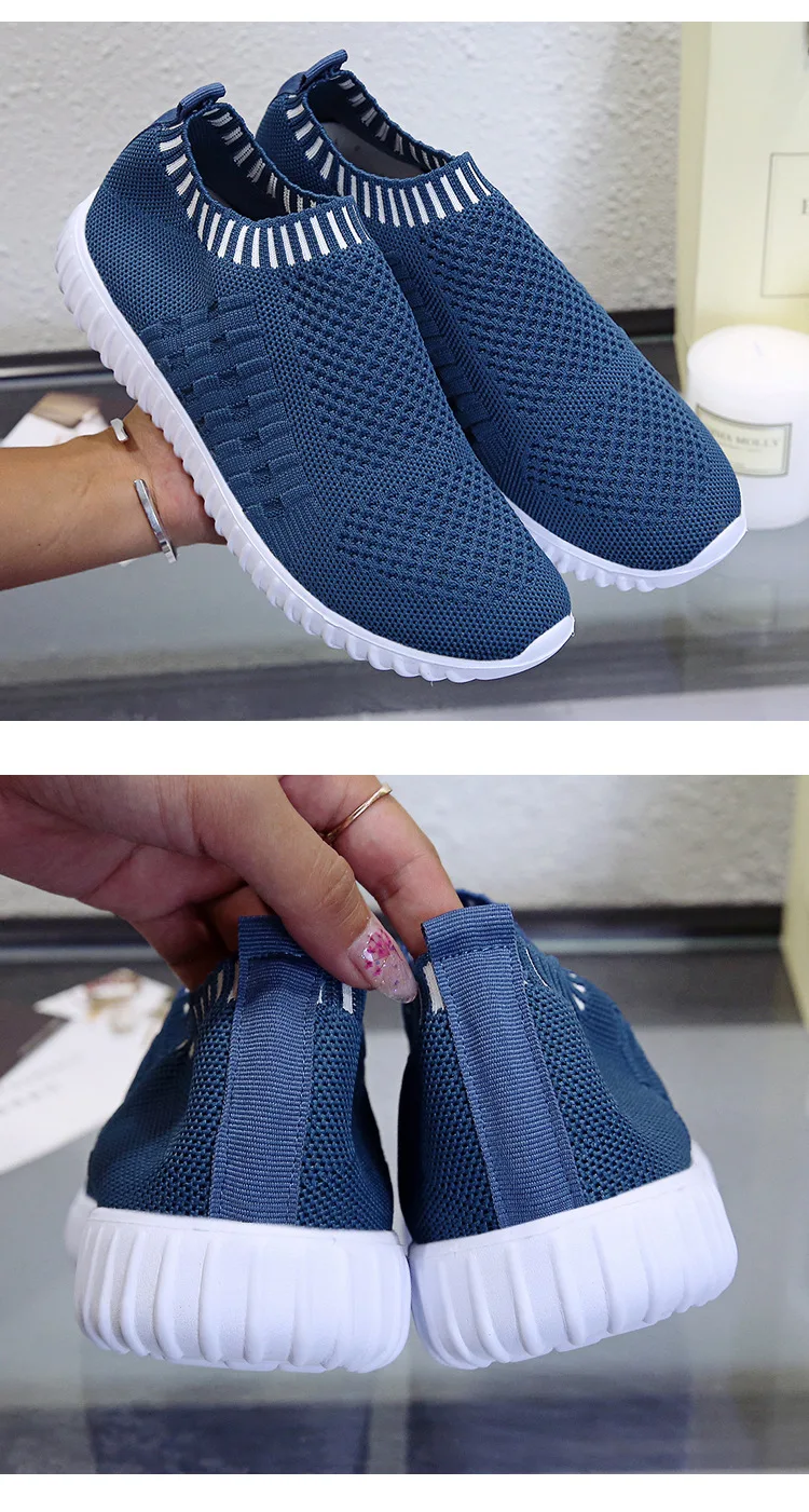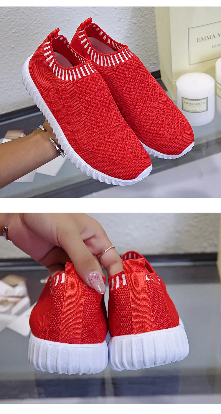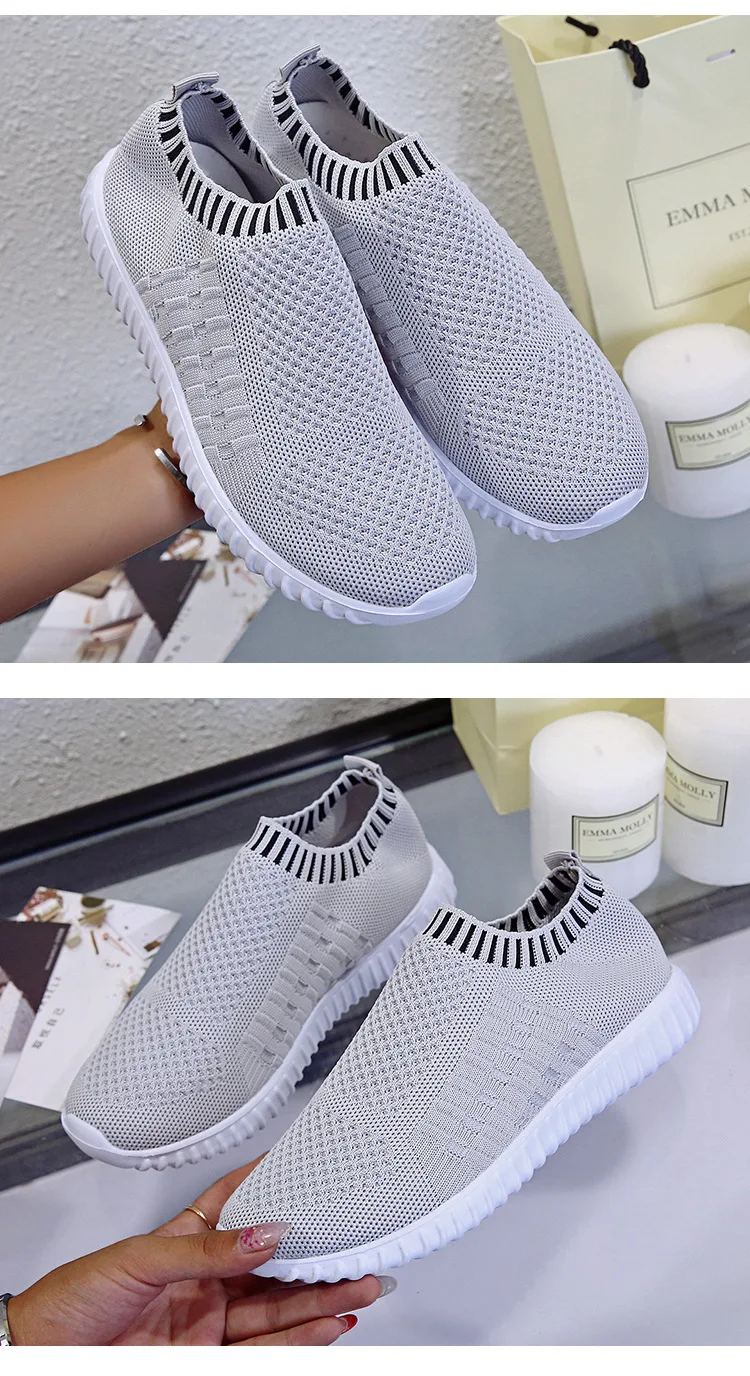 Женские кроссовки без шнуровки, Повседневные вязаные кроссовки-носк...