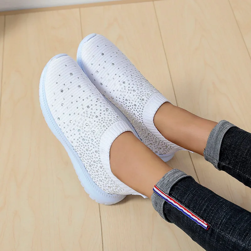 Женские туфли-лодочки со стразами, повседневные Лоферы New Kids спортивная обувь; Женские летние туфли без шнуровки размера плюс; Обувь высокого качества; Кроссовки; Женские кроссовки; Обувь на плоской подошве, обувь для пробежки